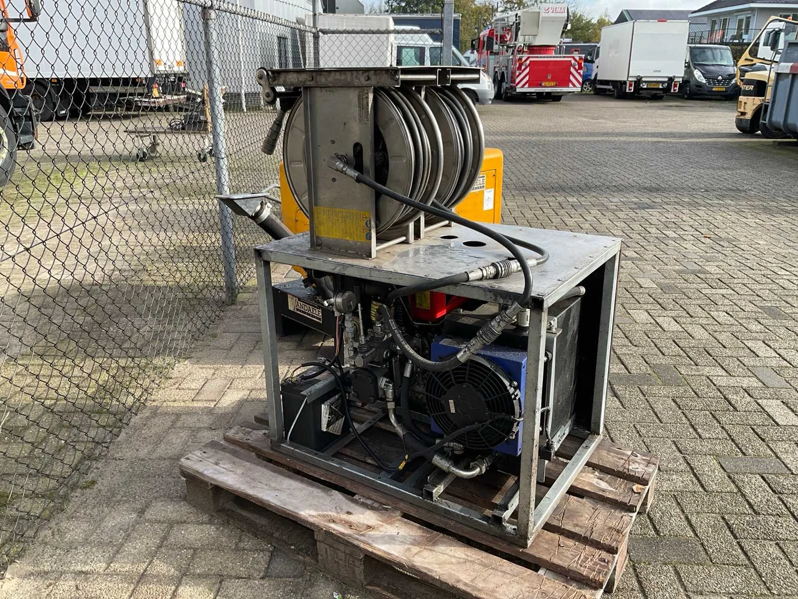 Oliekoeler+olietank, dubbelwerkend ventiel met arretering, 1 cilinder diesel motor, dubbele slanghaspel met hydrauliek slang Totale afmeting Breedte: 700mm Totale afmeting L: 900mm Totale afmeting Hoogte: 1200mm
