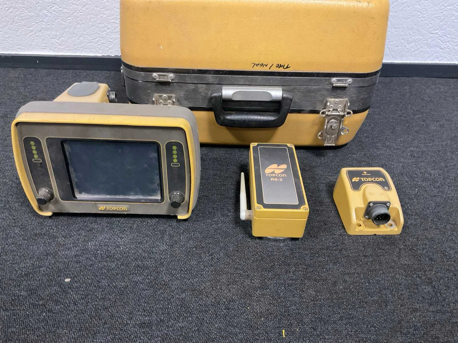 In box, 1x bedieningsscherm, 1x RS-2 antenne, 1x slope sensor, 1x QS1A LPS Merk: Topcon Type: Total Station LPS