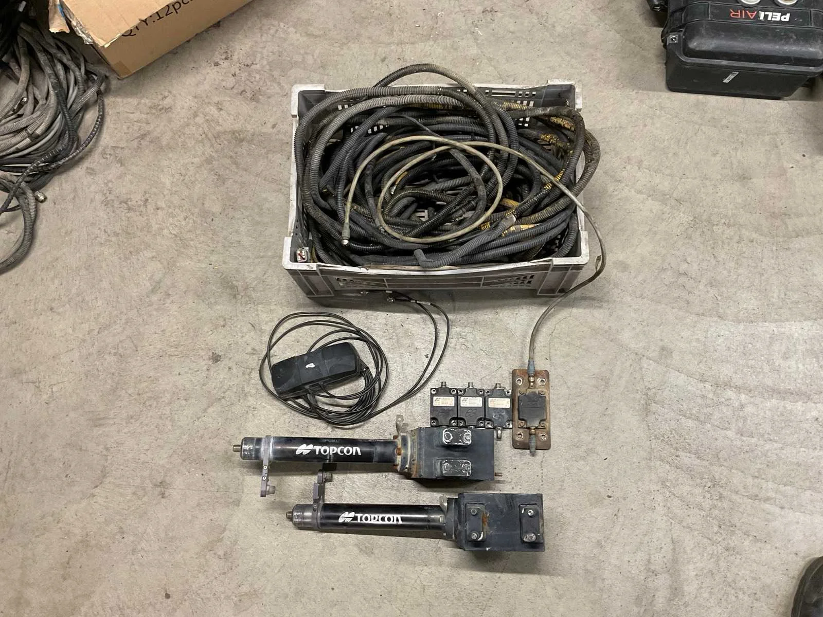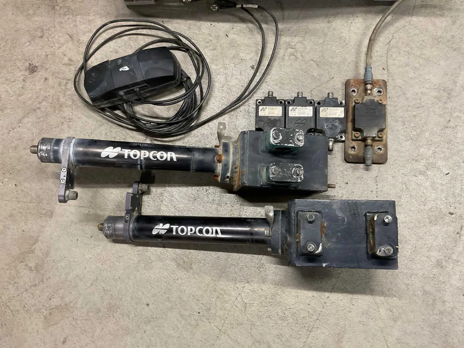 Afkomstig van een long reach kraangiek, kabels zijn extra lang, 2x steun, kabelset, antenne, 4x Topcon TS-i3s, afkomstig van Caterpillar 352F Merk: Topcon Type: X53i