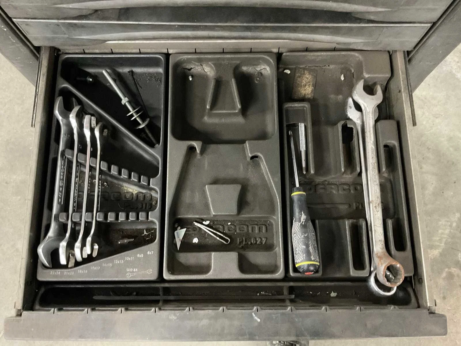 Merk: Facom Type: Chrono Jet 8 Aantal laden: 8 Met inhoud: true Totale afmeting L: 770mm Totale afmeting Breedte: 480mm Totale afmeting Hoogte: 96mm