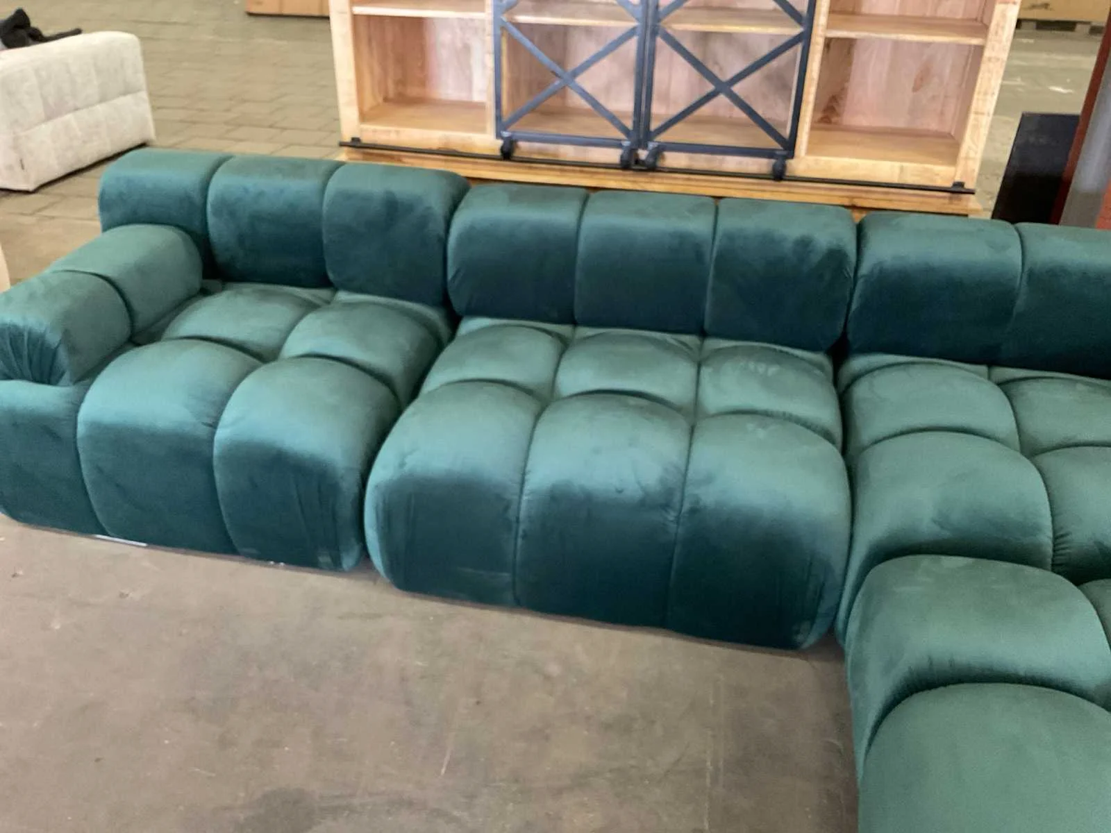 Showroommodel. Merk: Doni Mali Model: Modulaire Tropea Kleur: Groen Lengte: 282cm Breedte: 188cm Hoogte: 70cm Zithoogte: 43cm