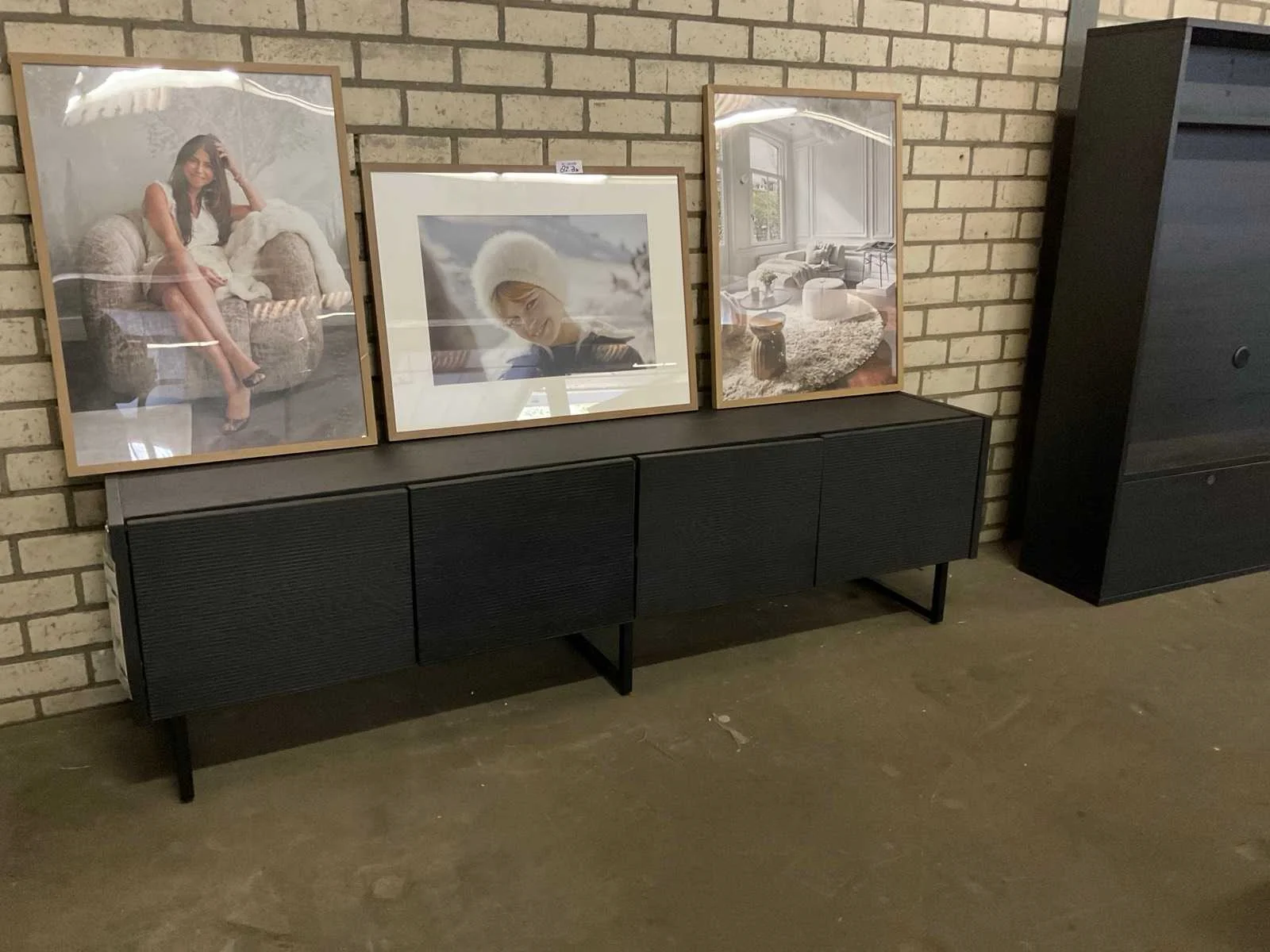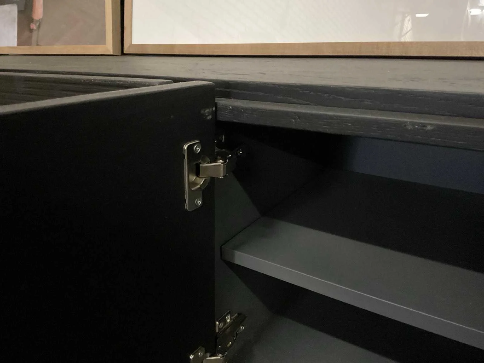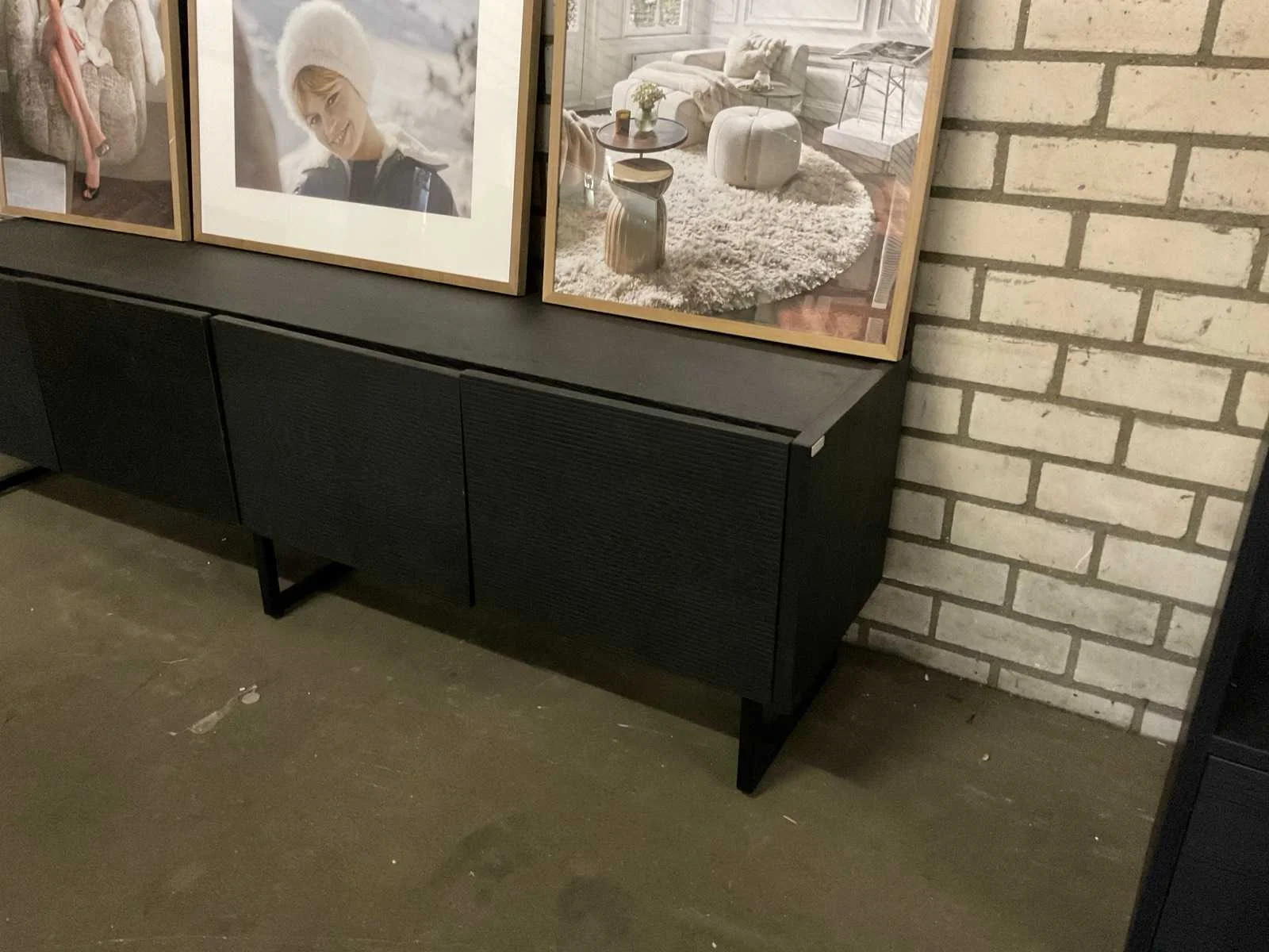 Showroommodel. Linkerboven scharnier van de rechter twee deurtjes dient nagekeken te worden. Merk: Xooon Model: Carving Kleur: Beige Lengte: 42cm Breedte: 210cm Hoogte: 60cm