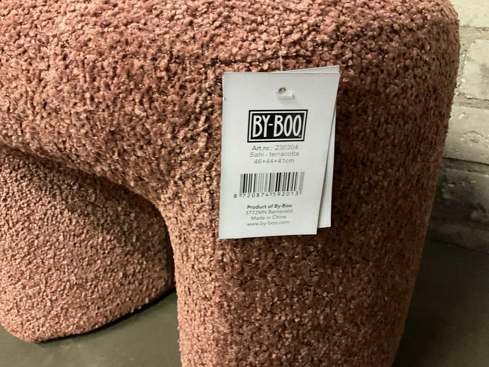 Showroommodel. Merk: By-Boo Model: Sahi Lengte: 46cm Breedte: 44cm Hoogte: 41cm Materiaal: Stof