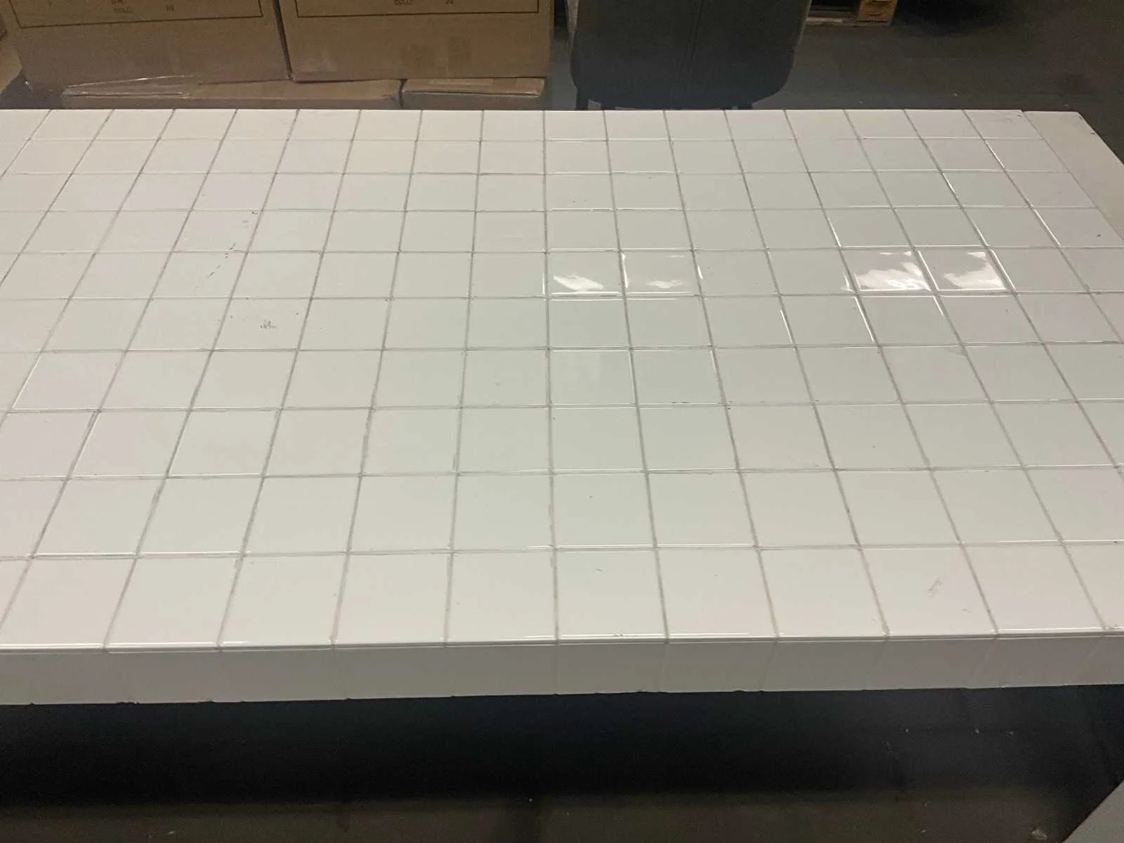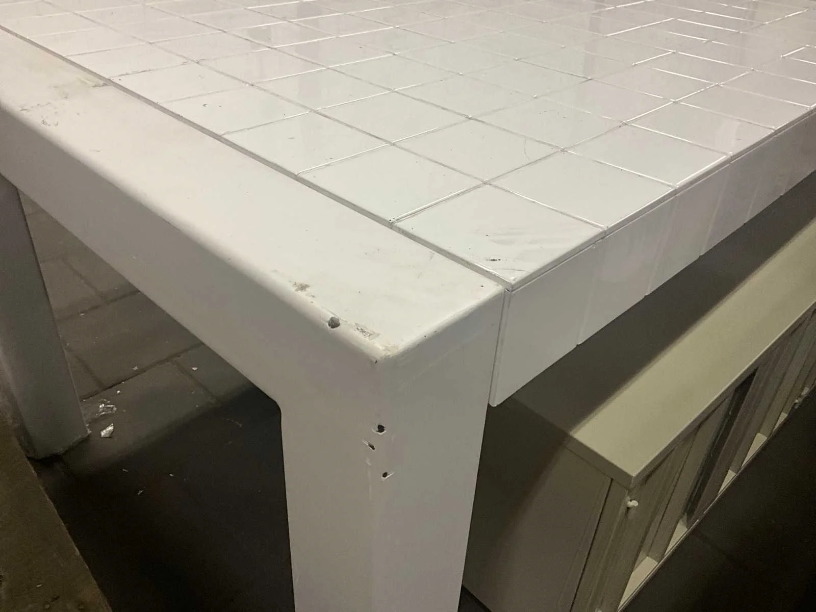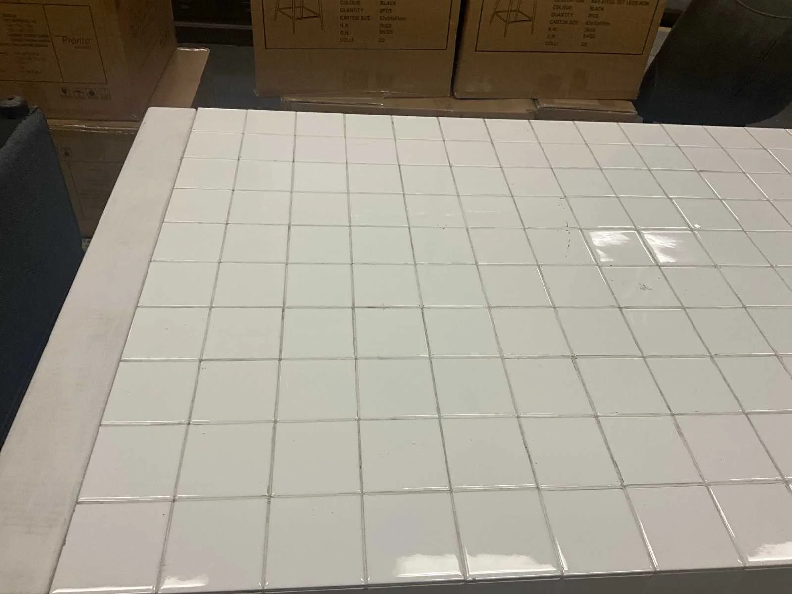 Gebruikt en beschadigd Tegelinleg Lengte: 212cm Breedte: 101cm