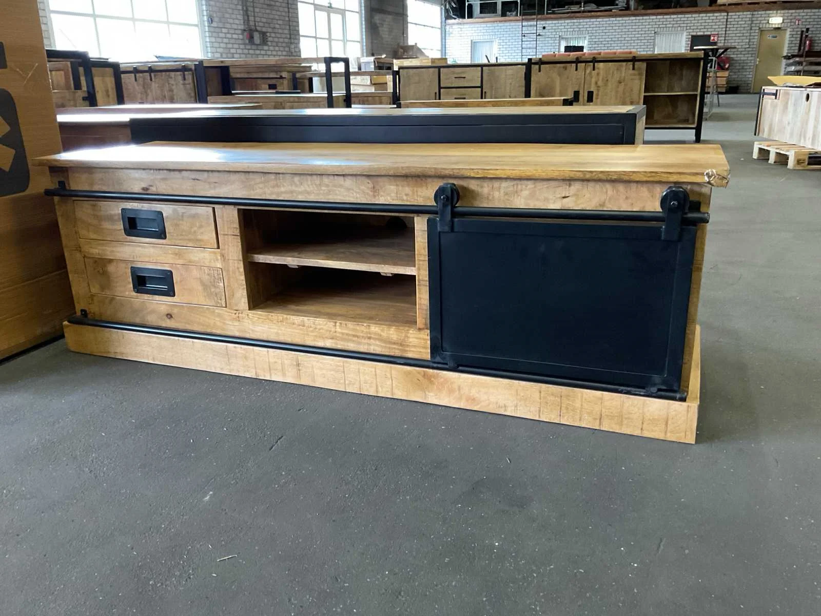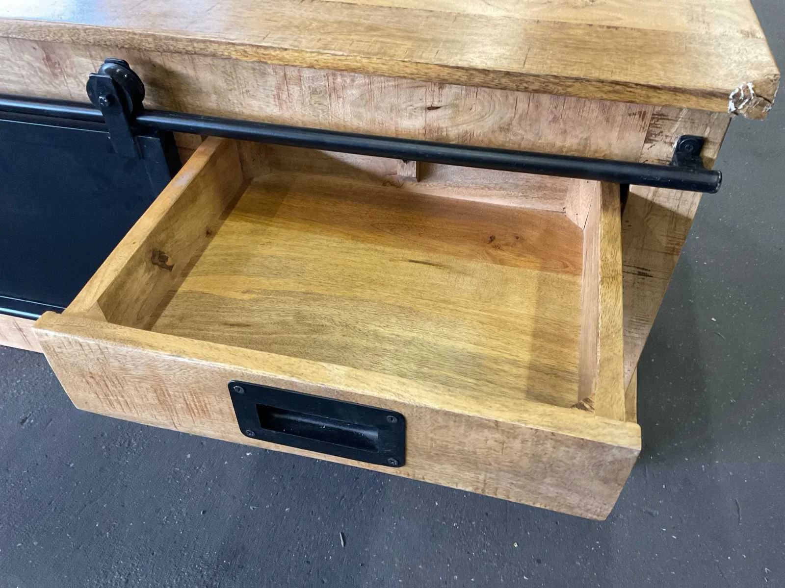 Showroommodel, beschadigd Model: Nora Lengte: 155cm Breedte: 45cm Hoogte: 40cm Materiaal: Mango hout
