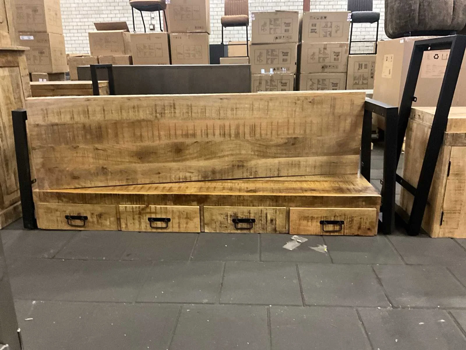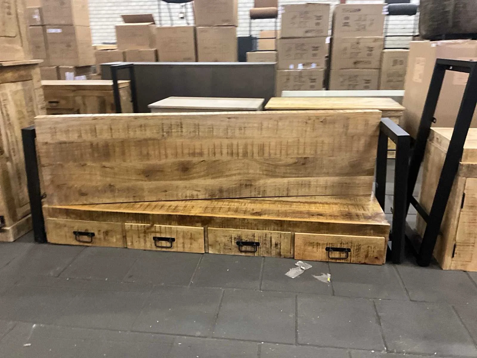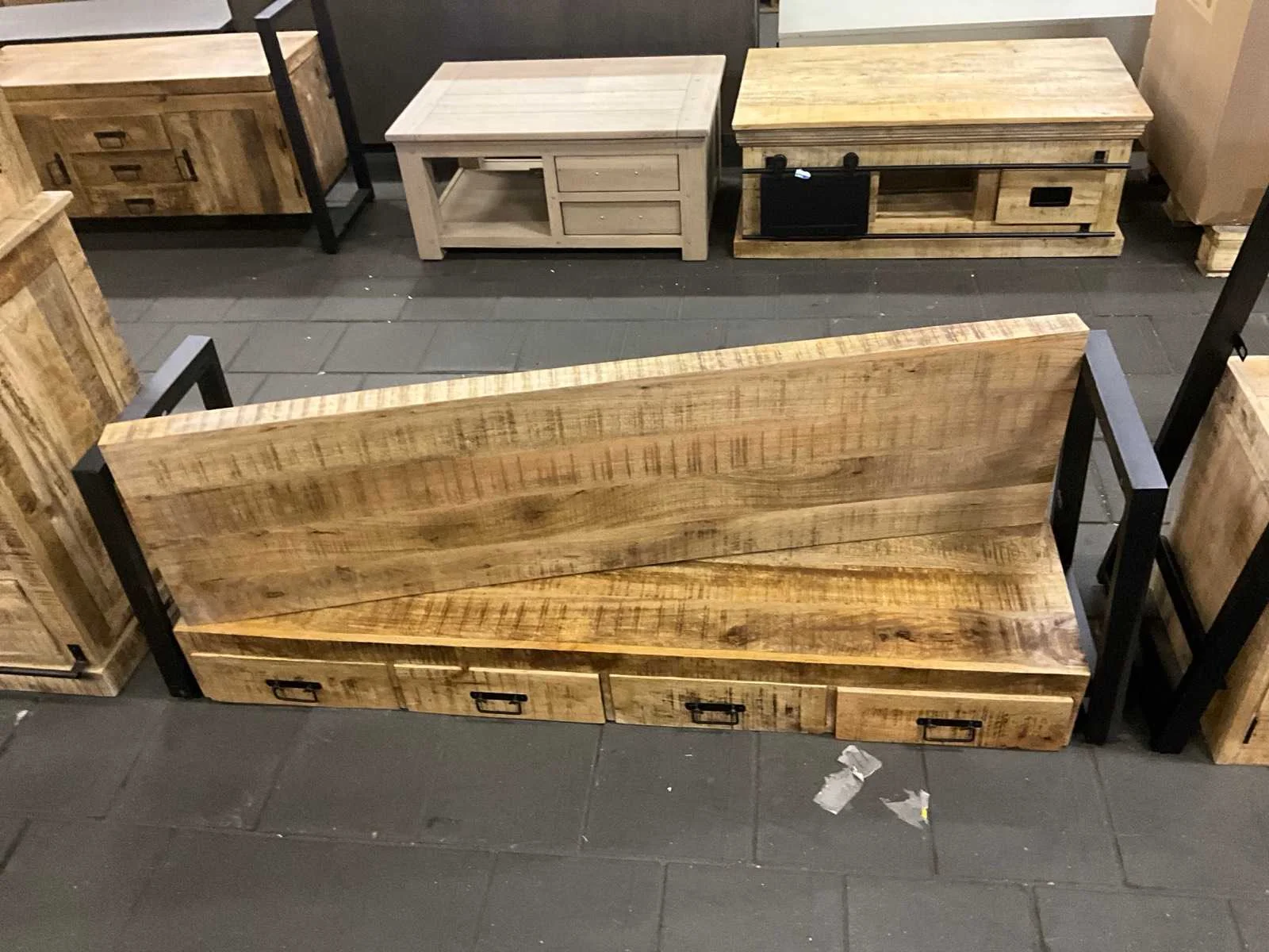 Dient nog gemonteerd te worden Exclusief schroeven Breedte: 180cm Hoogte: 68cm Diepte: 45cm Materiaal: Mangohout