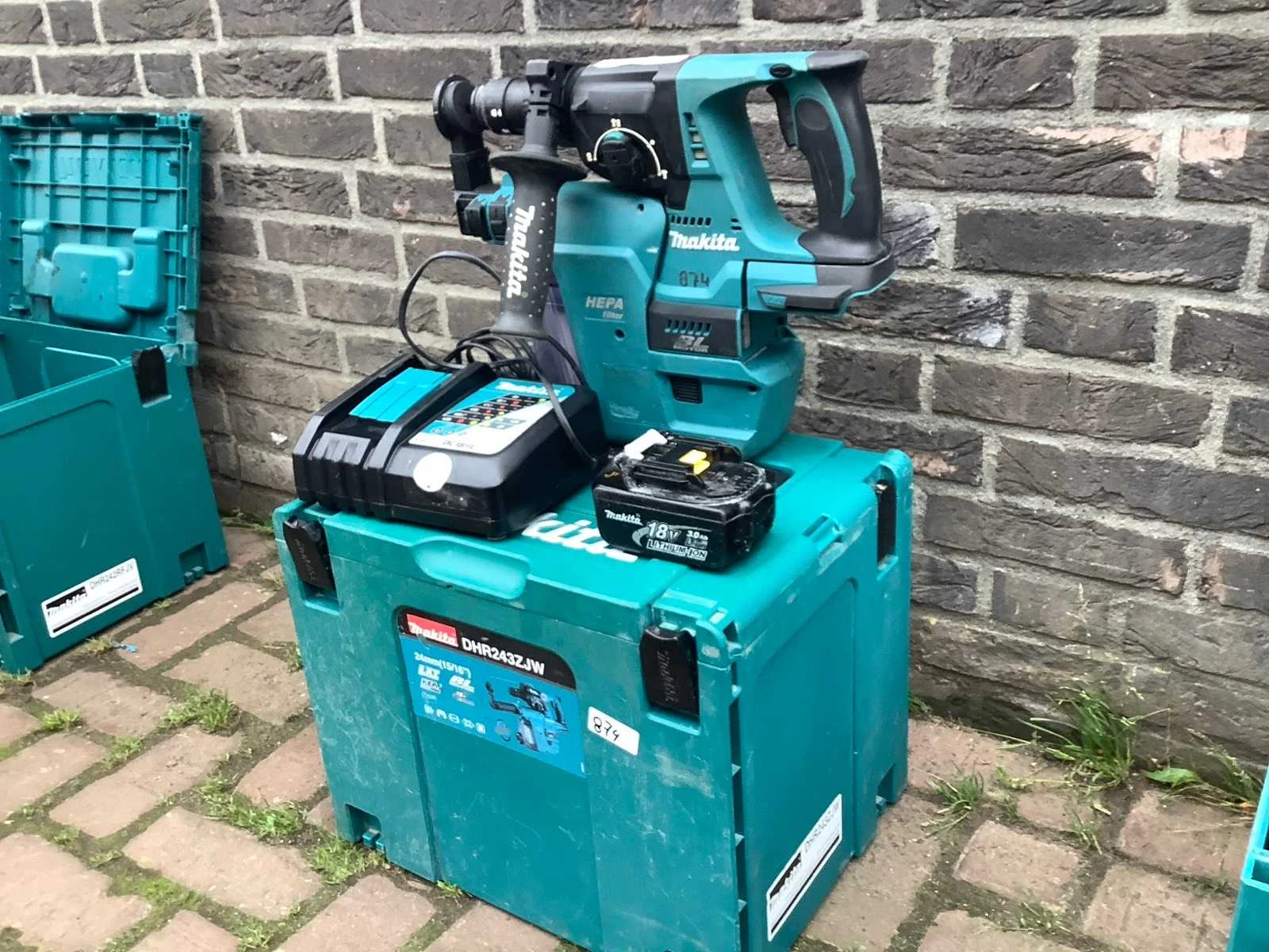 Op werking getest Merk: Makita Type: dhr243 Accu lader: true Met koffer: true Accuspanning: 18V Aantal accu's: 1