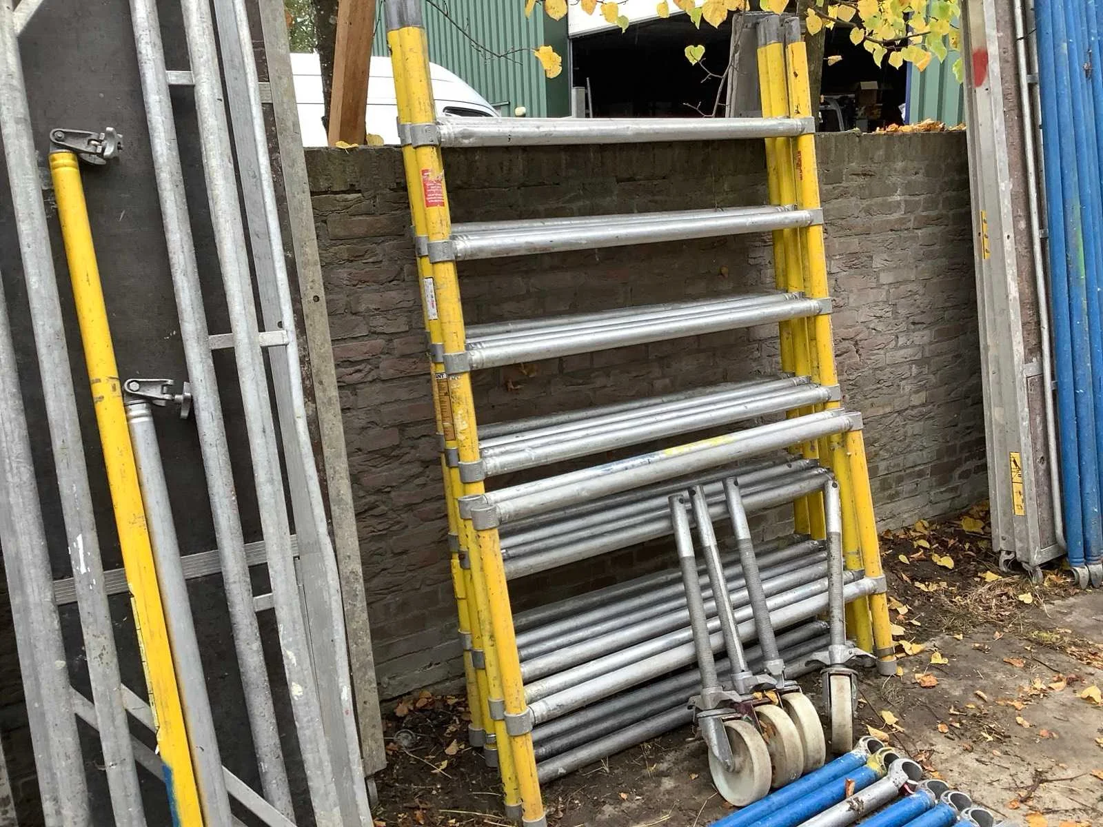 Merk: Instant Afmeting l: 2500mm Afmeting b: 1300mm Aantal opbouwdelen: 4 Aantal platforms met luik: 3 Aantal diagonaalschoren: 4 Aantal horizontaalschoren: 4 Aantal wielen: 4 Aantal stabilisatoren: 1 Aantal leuningen: 2
