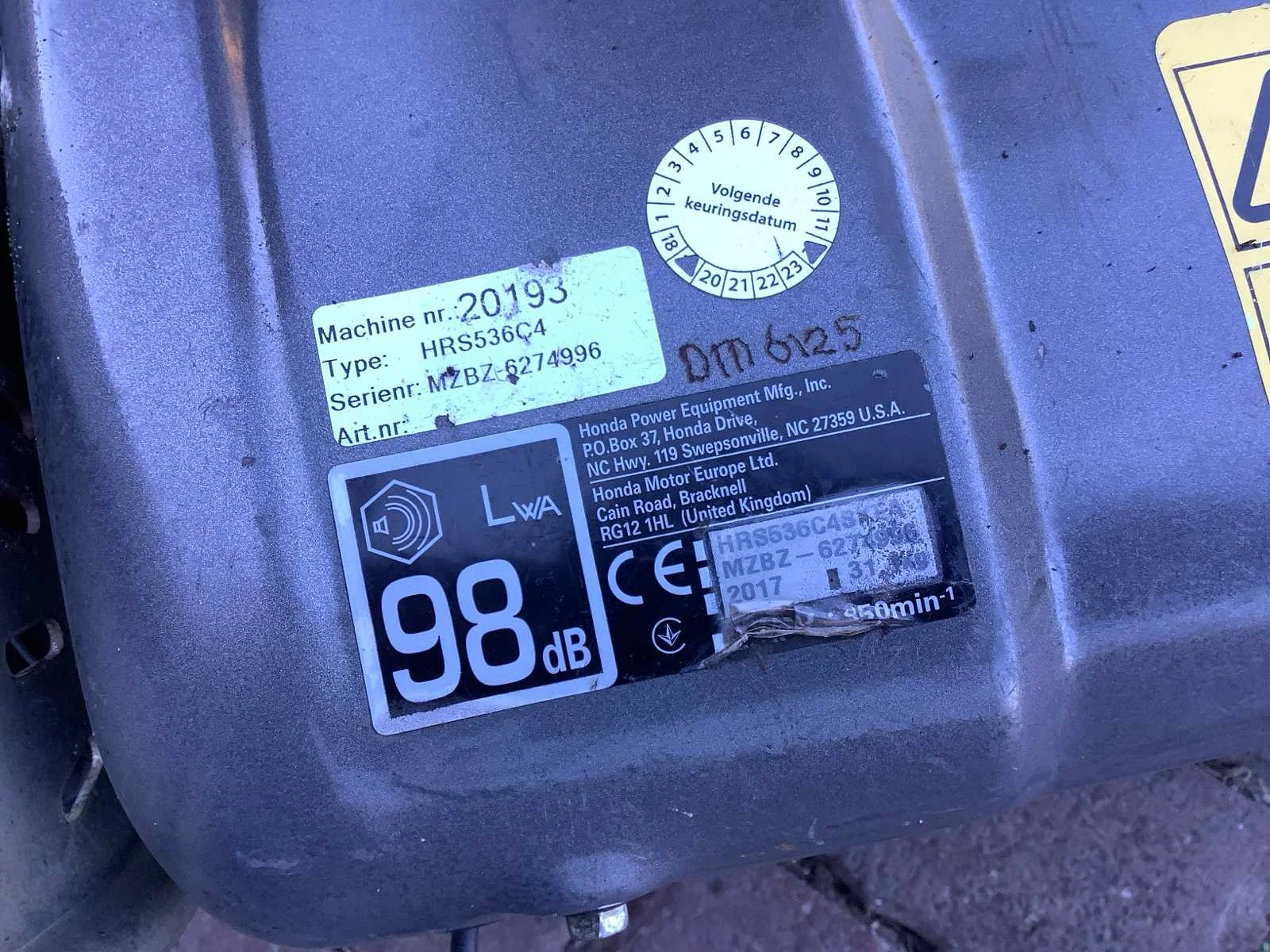 Op werking getest Merk: Honda Type: Hrs 536 Bouwjaar: 2017 Serienummer: 627996 Werkbreedte: 53cm Zelfrijdend: true Loopmaaier: true Benzinemotor: true Brandstof: benzine Eigen gewicht: 31kg