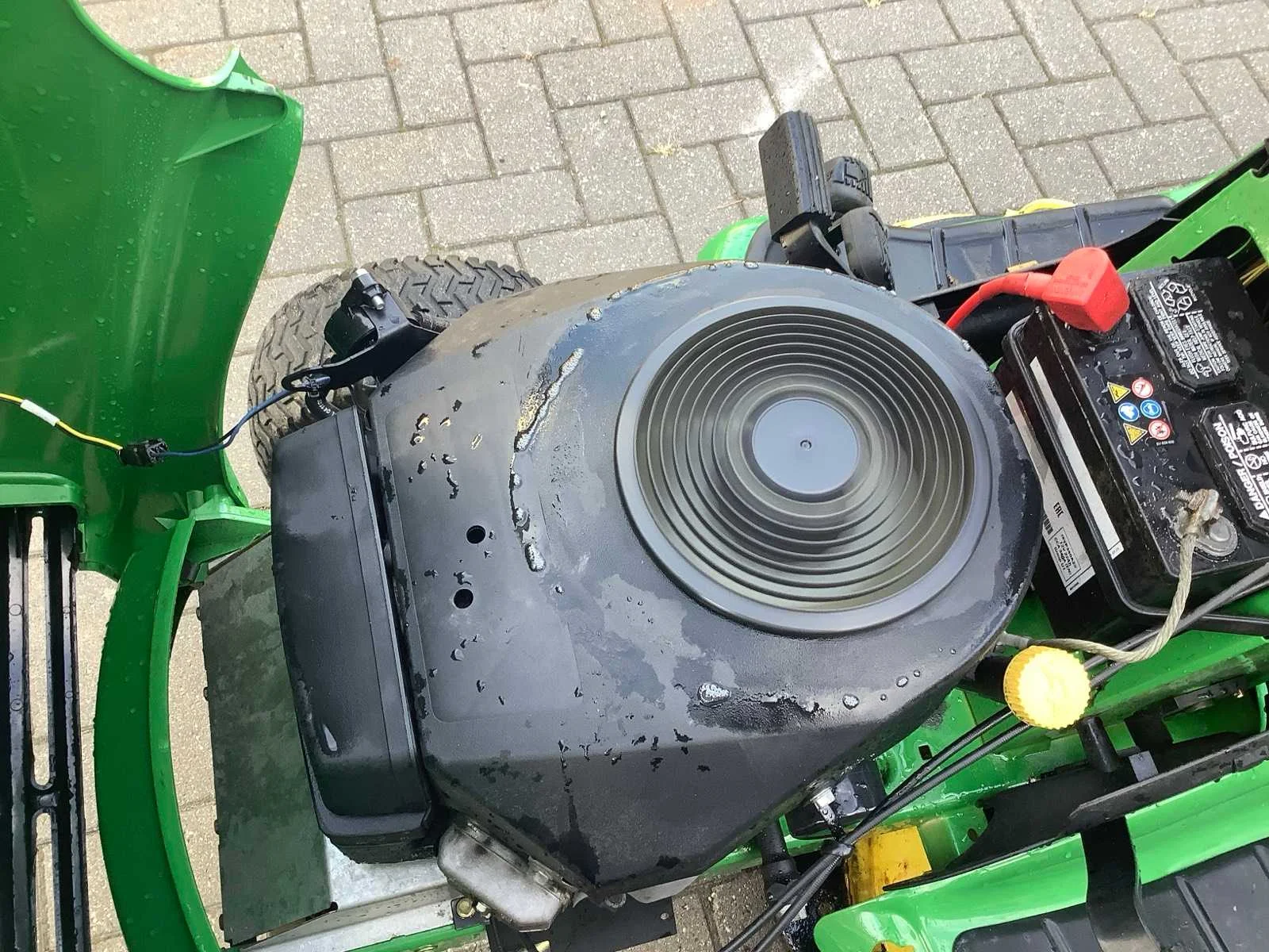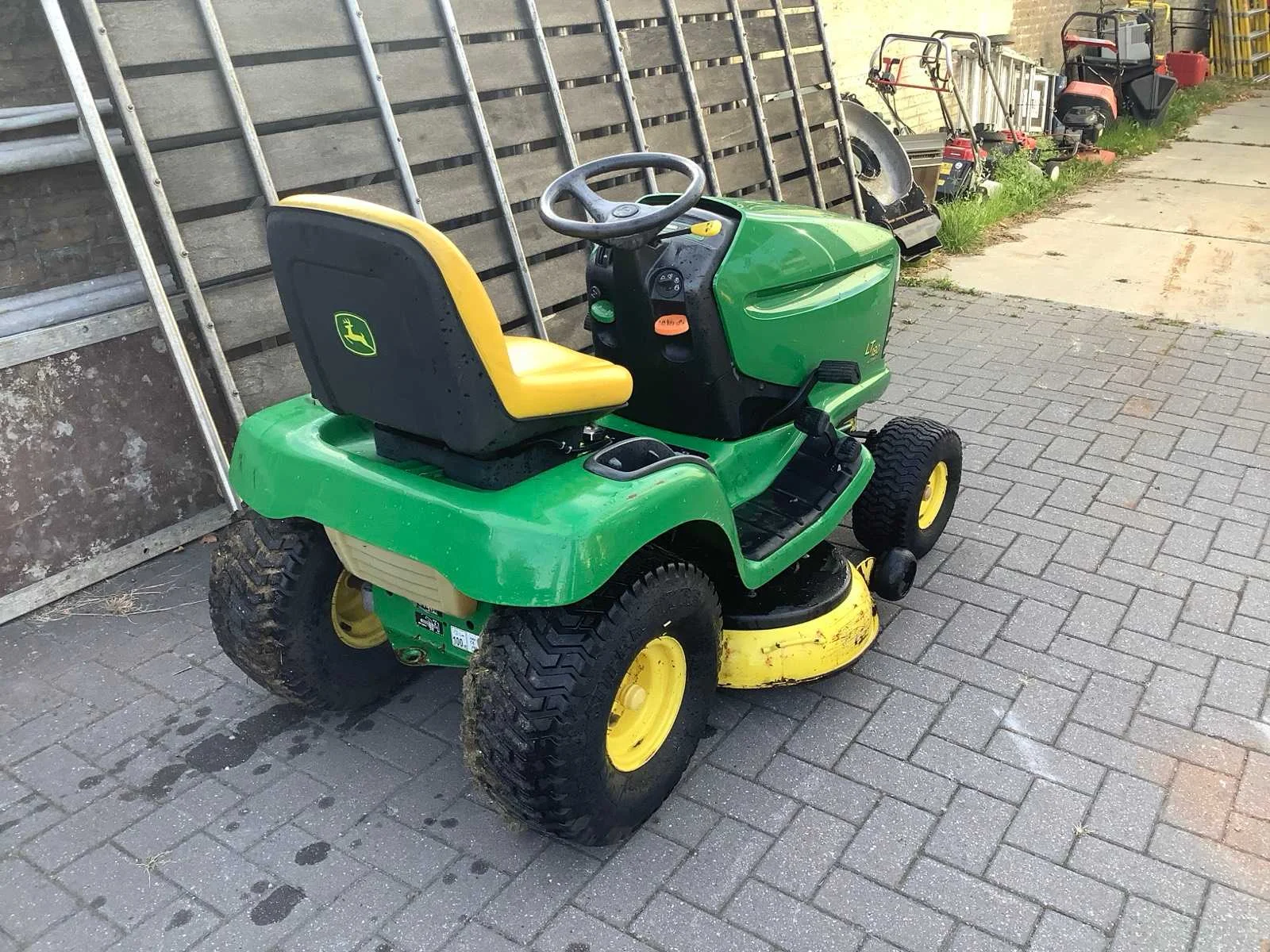 Op werking getest start rijd maait 2cillinder kawaski Merk: John deere Type: lt180 Werkbreedte: 107cm Zelfrijdend: true Benzinemotor: true Brandstof: benzine Vermogen (pk): 17