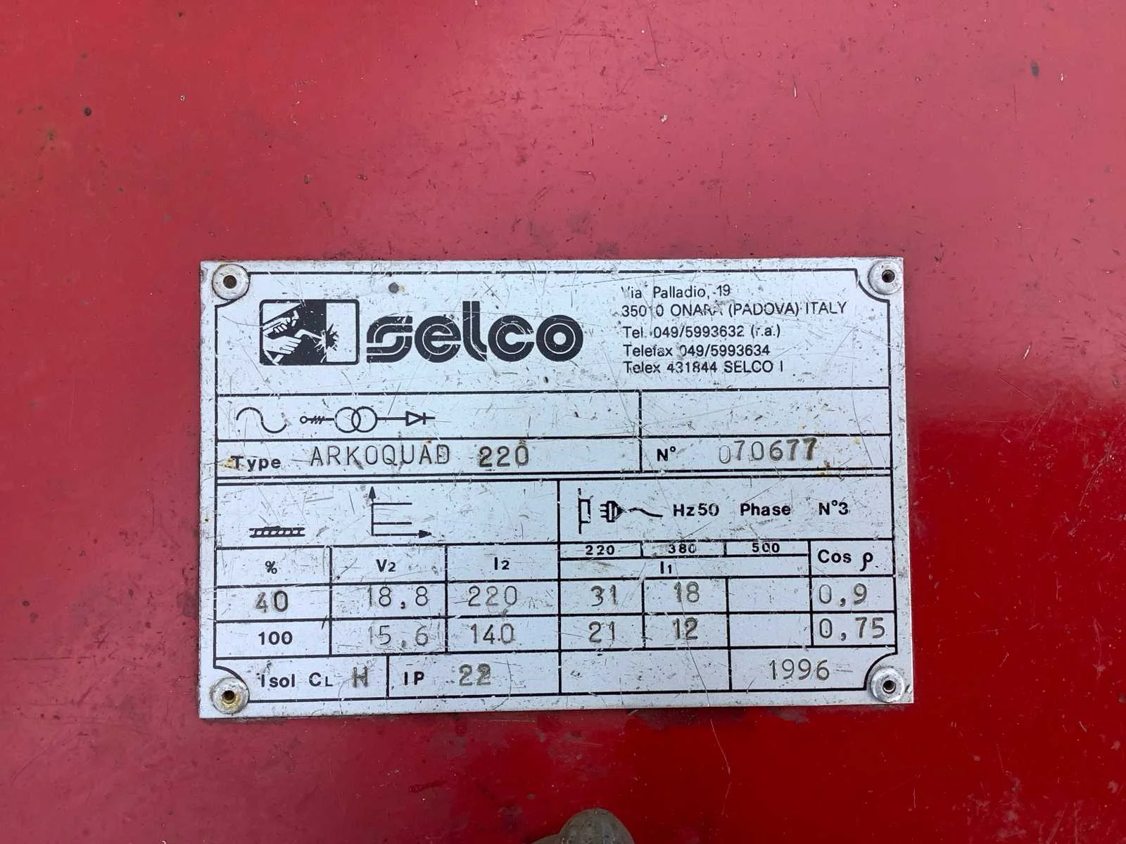 Watergekoeld ac,dc, Merk: Selco Type: Arkoquad Serienummer: 070677 Aansluiting: 230V