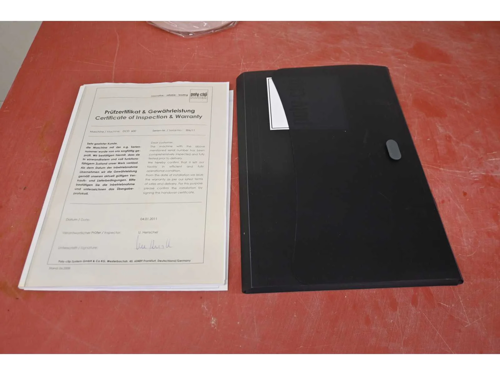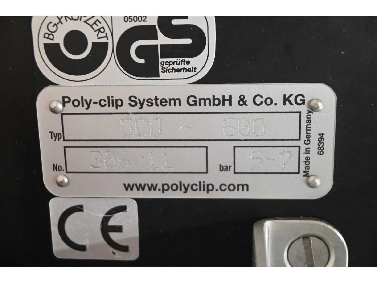 Pneumatisch. Merk: Poly-Clip Type: DCD 600 Bouwjaar: 2011 Serienummer: 306/11 Totale afmeting L: 450mm Totale afmeting Breedte: 600mm Totale afmeting Hoogte: 1000mm