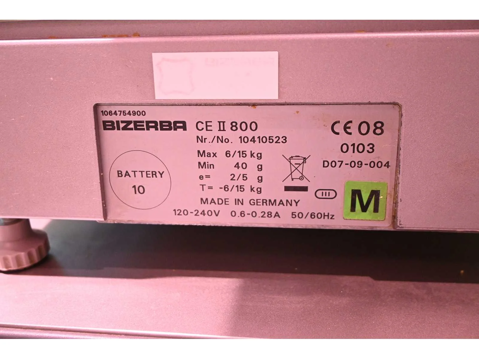 Met verwarmde weegschaal. Merk: Bizerba Type: CE-2- 800 Aansluiting: 230V Totale afmeting L: 400mm Totale afmeting Breedte: 450mm Totale afmeting Hoogte: 700mm