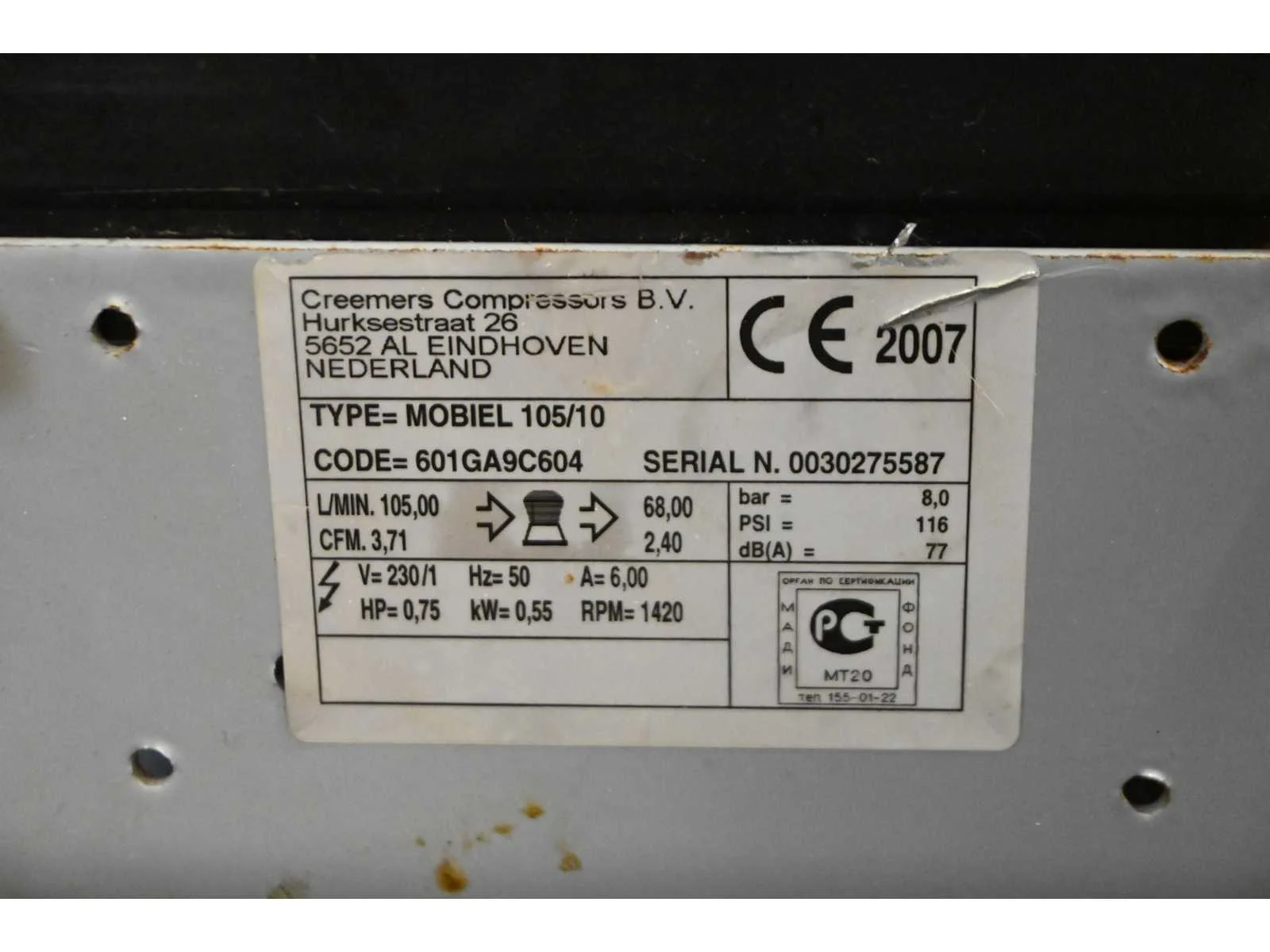 Creemers mobiel 105/10 luchtcompressor