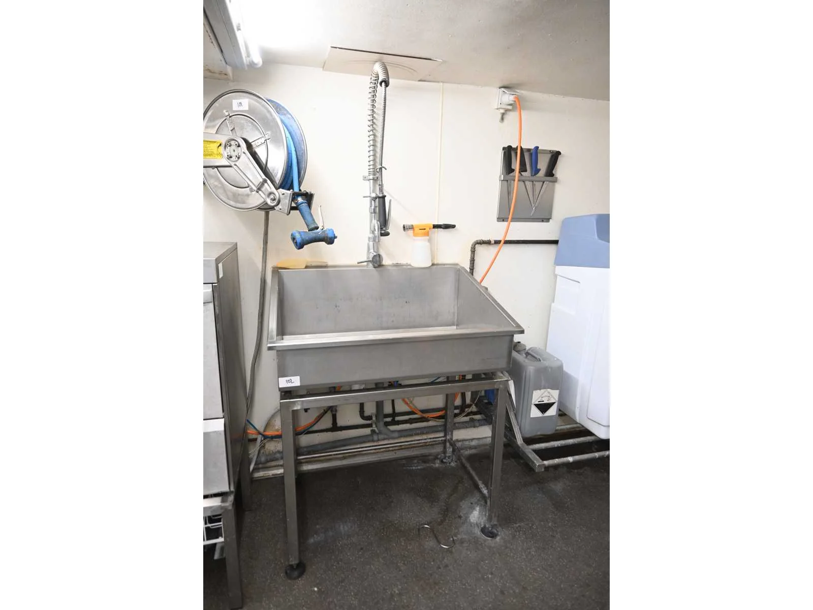 Rvs spoelbak met sproeikop, mengkraan en rvs onderstel