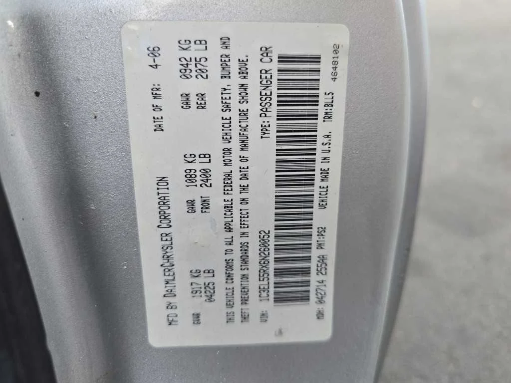 Kenteken: 40-NGX-8 Merk: Chrysler Model: Sebring Cabrio Type: 2.7 Limited Cilinderinhoud: 2700cc Vermogen (kW): 147kW Brandstof: benzine Afgelezen mijlenstand: 199121mi Chassisnummer: 1C3EL55RX6N260052 Laadvermogen: 0kg Datum eerste toelating: 2006-02-28 Datum eerste toelating (NL): 2010-09-01 APK vervaldatum: 2025-06-10 Vermogen (pk): 200hp Aantal zitplaatsen: 4 Kleur: grijs Transmissie: Automaat Stuurwiel: links Emissieklasse: 4 Aantal deuren: 2 Ledig gewicht: 1530kg Bruto BPM (NL): 44063€ Rest BPM: 0€ Aantal cilinders: 6 Carrosserie: cabriolet Onderhoudshistorie: Ja gedeeltelijk Carfax Link: https://was.carfax.eu/v0/api/ccdid/5100016408/svc/201/vinreg/40NGX8/checksum/eyJhbGciOiJIUzI1NiIsInR5cCI6IkpXVCJ9.eyJleHAiOjE3NTU1MjMzNDl9.WWlobQM2JflXnq83YbOmqWNHCyZ4iJ7W5PcqWKhbR9U startinformatie : Start en rijdt
