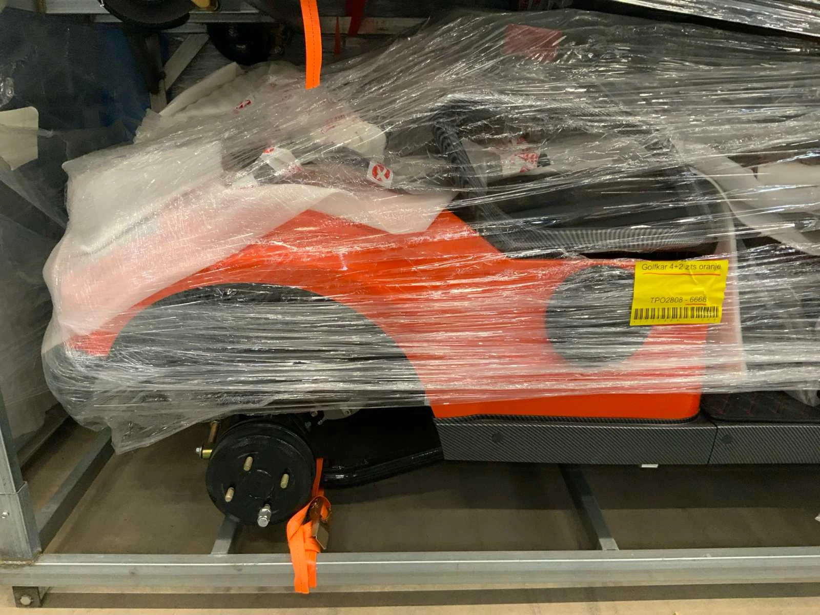 LET OP! Kleur van de golfkar is oranje; foto's ter indicatie; 60v/150Ah accu; 5kw; elektrische sleutel; multimedia systeem; 10.1 inch touchscreen; achteruitrijcamera; radio; speakers; bekerhouders; knipperlicht; usb aansluiting; draadloze telefoonlader; 230v laadkabel; terreinbanden 23x10.00-14; riemen; toeter; spiegels; opbergruimte; leather look; disc Brakes; aluminium velg; led koplampen; ongebruikt; bouwpakket in metalen frame. transport afmeting ca. 3500x1400x1500mm; 6670 Merk: RTE Bouwjaar: 2024 Spanning: 60V Aantal personen: 6 Elektrisch: true Kleur: Oranje Lengte: 390cm Breedte: 125cm Hoogte: 200cm