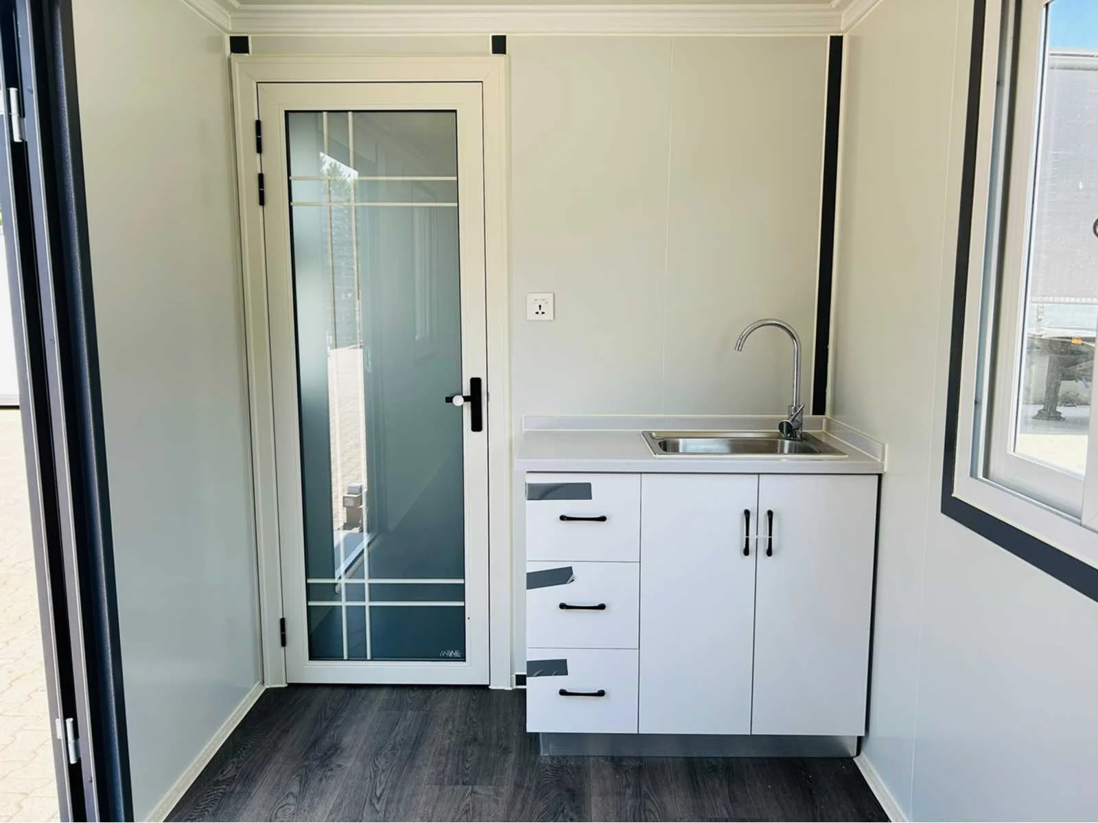 Afsluitbare deur; 2 schuiframen; 1 kiep raam; stelbare poten; hijs oog; opstapje; vinyl vloer; wastafel; toilet; douche; keukenbok; geïsoleerd; ventilator; aansluitingen aanwezig voor af- en aanvoer; 7412 Merk: RTE Type: 7412 Bouwjaar: 2025 Schakelunit: true Aantal ramen: 3 Keukenblok: true Toilet: true Eigen gewicht: 1900kg Totale afmeting L: 5960mm Totale afmeting Breedte: 2200mm Totale afmeting Hoogte: 2450mm