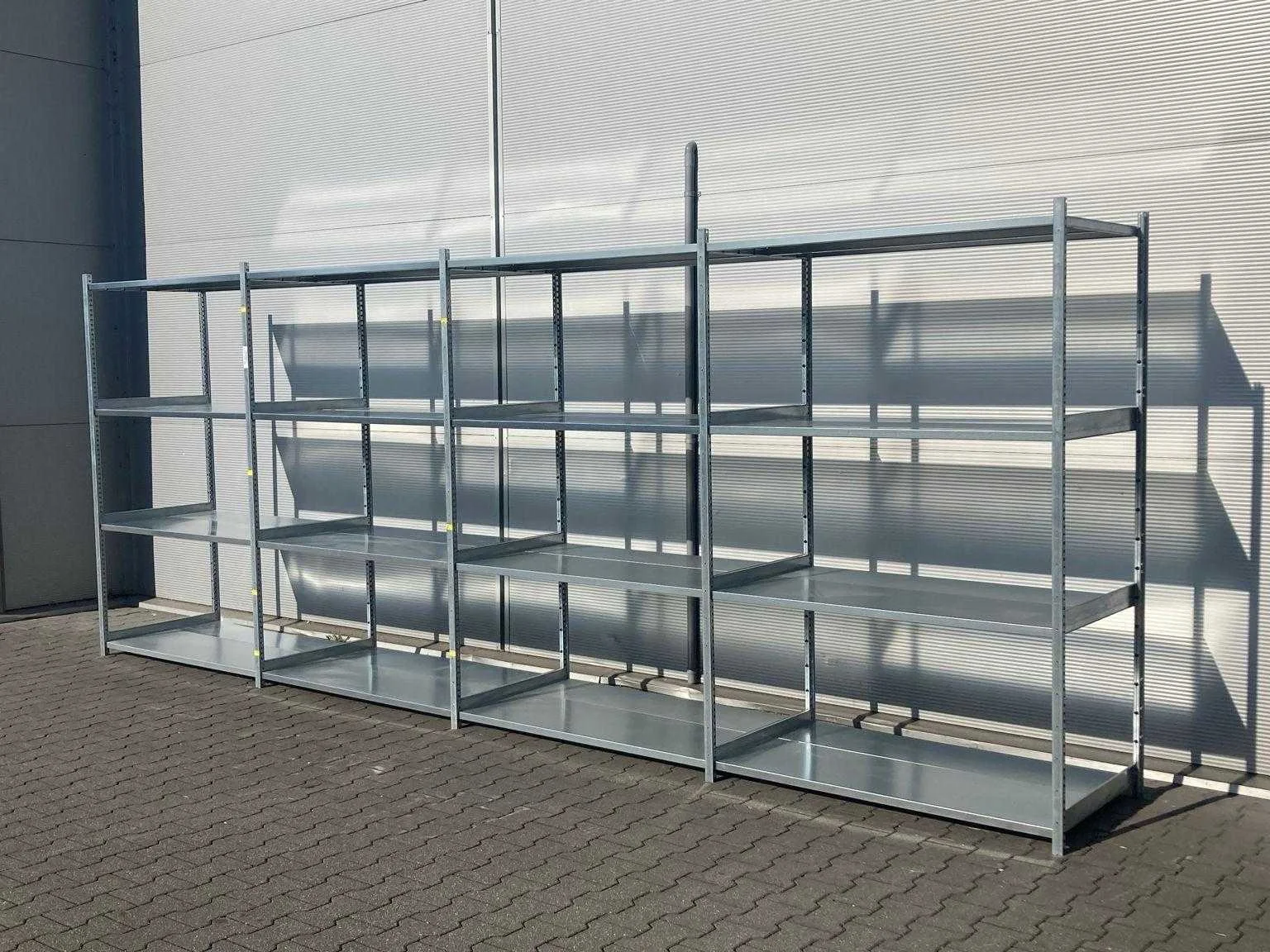 5x staander 2000x700mm; 16 legborden bestaande uit 2 delen 1280x300 en 1280x400mm; 7461*5/7462*16/7463*16 Merk: GS3 Sectie afm. b: 700mm Sectie diepte: 1280mm Sectie afm. h: 2000mm Aantal staanders: 5 Aantal legborden: 16 Demontabel: true