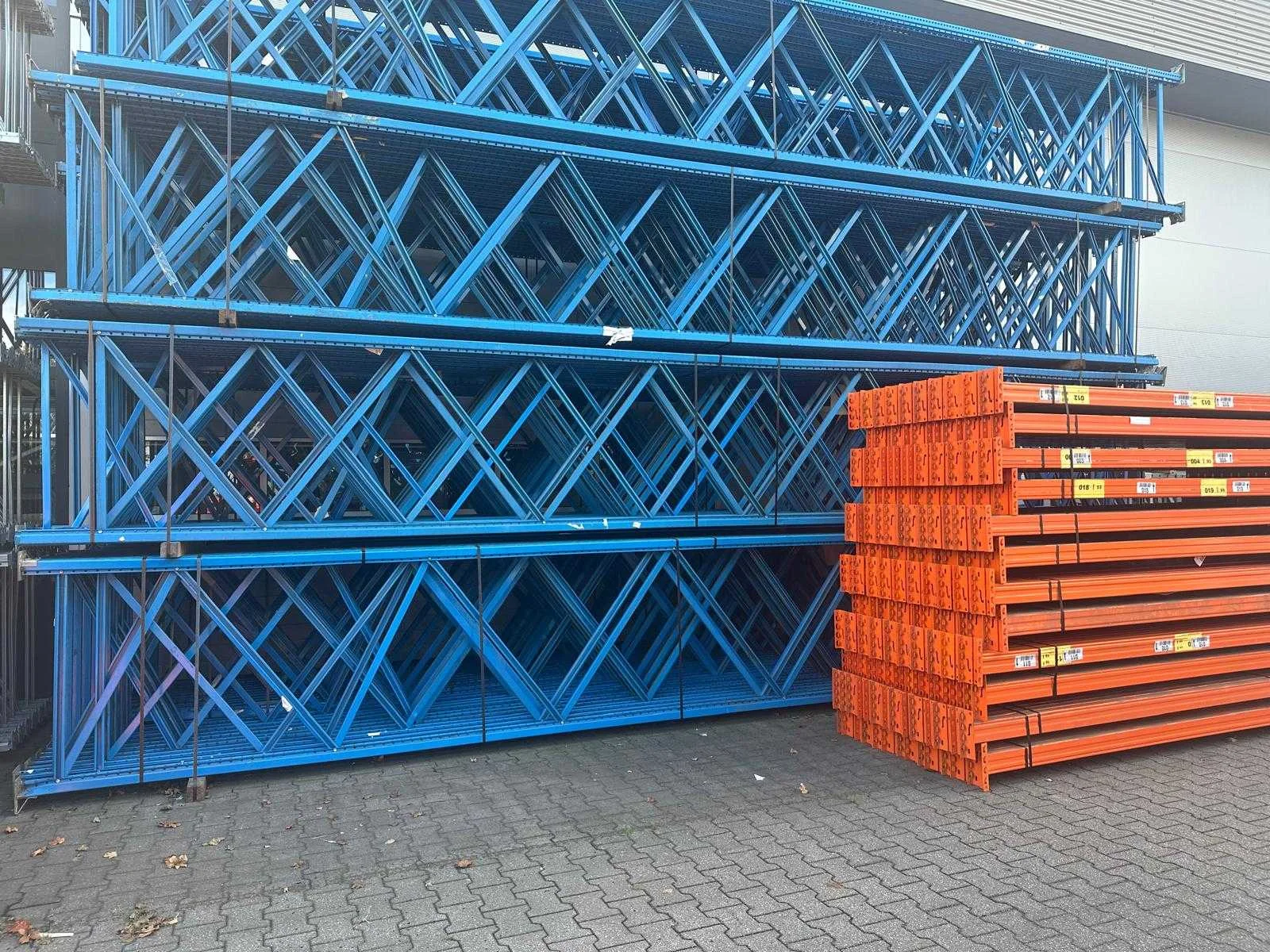 Betreft schadepartij; let op; staanders deels verroest/beschadigd; wordt voor de voet transport klaar uitgeleverd; 7077*24 / 7828*96 Merk: Stow Aantal secties: 23 Sectie afm. b: 2900mm Sectie diepte: 1100mm Sectie afm. h: 7500mm Aantal staanders: 24 Aantal liggers: 96 Demontabel: true