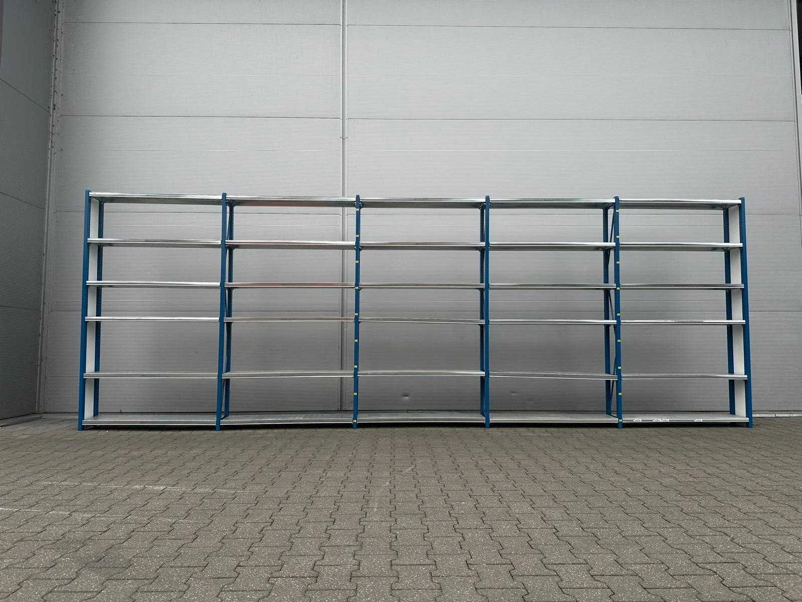 Gebundeld; Gebruikt; 6x staander 2200x300mm; 30x legbord 1200x300mm; 7327*6 / 7328*30 Merk: Nedcon Sectie afm. b: 300mm Sectie diepte: 1200mm Sectie afm. h: 2200mm Aantal staanders: 6 Aantal legborden: 30