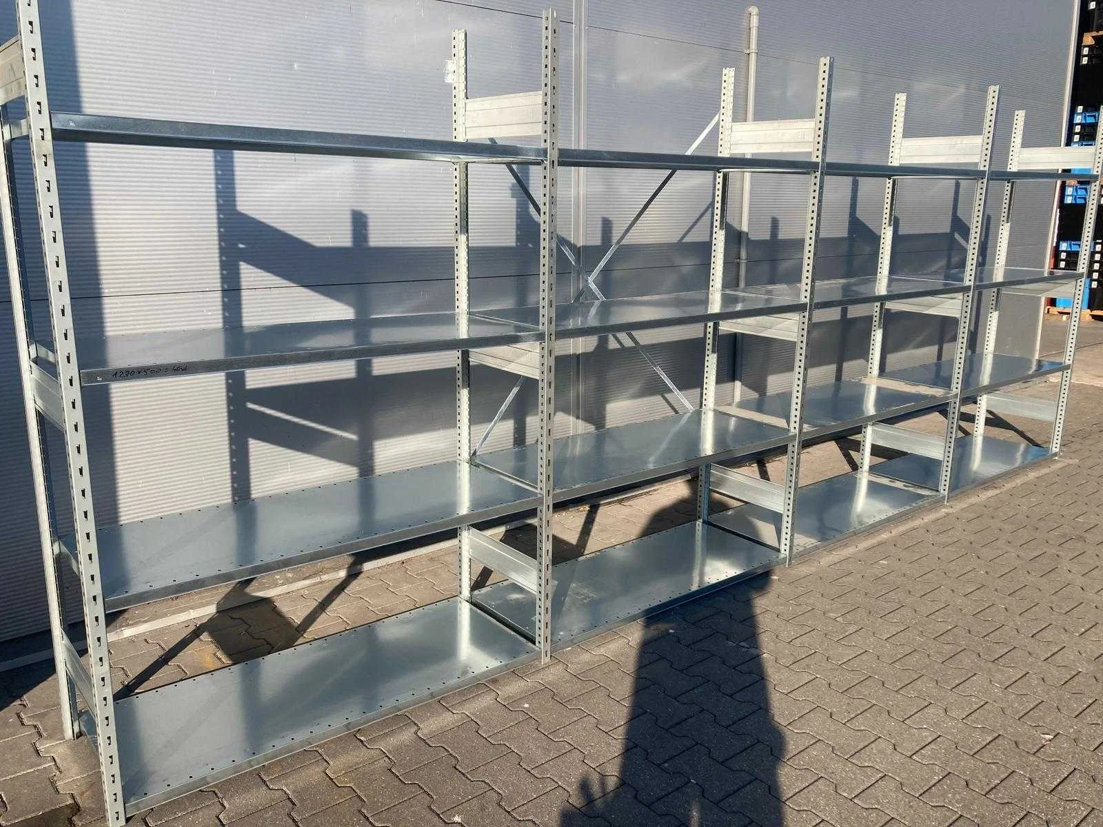 Ongebruikte Stow legbordstelling; wordt netjes gebundeld en transport klaar geleverd; zonder schoorset; Merk: Stow Type: ongebruikt Aantal secties: 4 Sectie afm. b: 965mm Sectie diepte: 400mm Sectie afm. h: 2000mm Aantal staanders: 5 Aantal legborden: 25