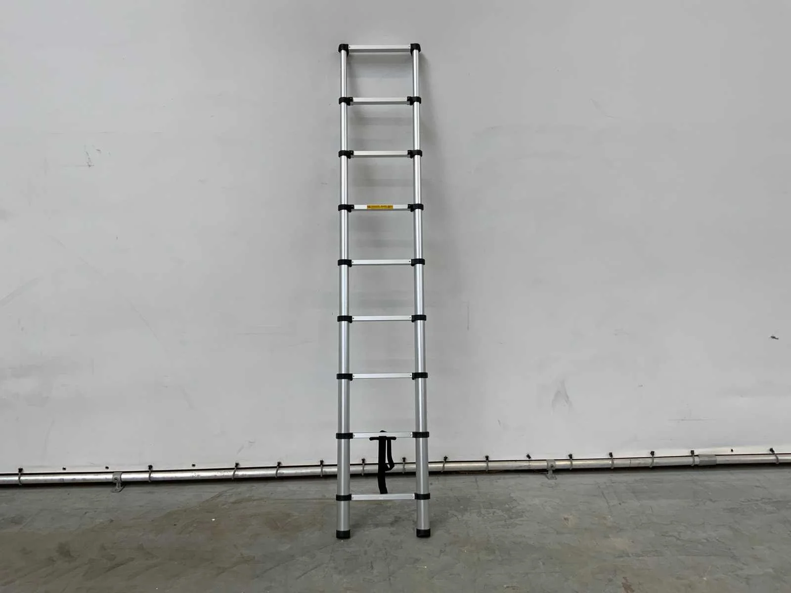 Telescopische ladder 2.6M; 5720 Merk: Mrsafe Type: TL-260 Aantal treden: 9 Aluminium: true Telescoopladder: true Eigen gewicht: 14kg Totale afmeting Hoogte: 2600mm