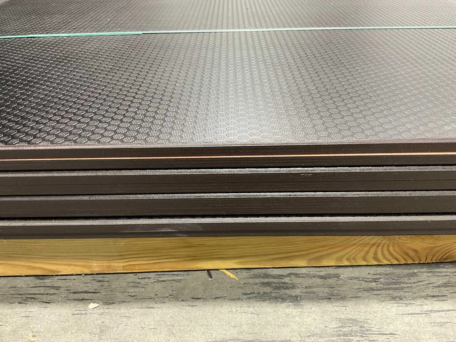 KoskiRuby plaat 1792 x 1195 x 12 mm. KoskiRuby is een duurzaam vloermateriaal met een harde slijtvaste overlay. Tijdens het coatingproces wordt er een antisliplaag in zeghoekig robijnpatroon op de filmlaag geperst 'hot pressed'. Het verhoogde antislip zeshoekige patroon behoudt zijn antislipeigenschappen onder een breed scala aan klimatologische omstandigheden omstandigheden, en daarom is KoskiRuby een ideaal materiaal voor veeleisende bevloering. KoskiRuby is speciaal geschikt voor steigers, laden, platforms, podia, tribunes, terrassen, sport, speeltuin faciliteiten en aanhangwagens. Voordelen van KoskiRuby multiplex: Hoog draagvermogen Slijtvast oppervlak Slipvast oppervlak Milieuvriendelijk gedurende de gehele levenscyclus Lengte: 1792mm Breedte: 1195mm Hoogte: 12mm