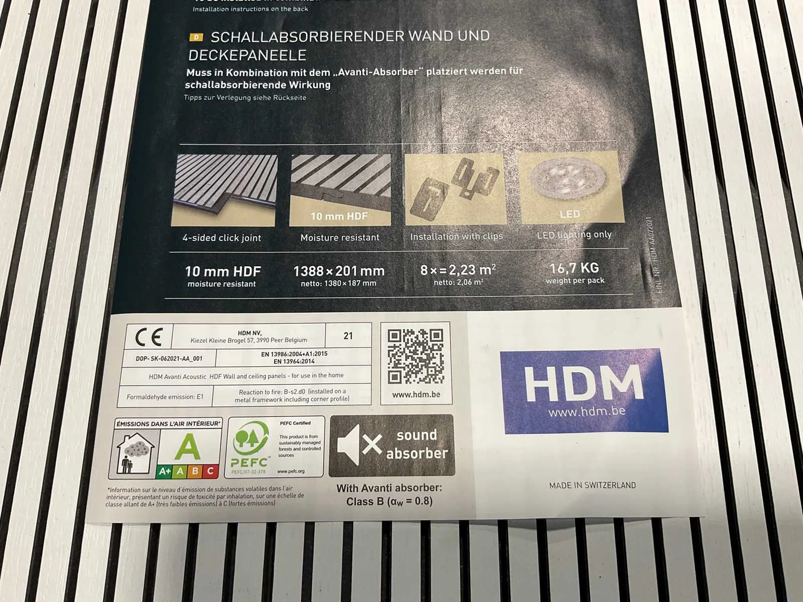 De Avanti Acoustic panelen combineren een modern lattenwand design met functionele geluidsdemping en zijn daarmee de ideale keuze voor zowel wanden als plafonds. Gemaakt van 10 mm vochtwerend HDF met een hoogwaardig melamine oppervlak, bieden ze een duurzame en stijlvolle afwerking. De panelen hebben een formaat van 138,8 x 20,1 cm en worden geleverd in pakken van 8 stuks (2,23 m²) met een gewicht van 16,7 kg per pak. Dankzij de klikverbinding aan vier zijden zijn de panelen snel, strak en naadloos te monteren met clips, wat zorgt voor een professionele uitstraling met minimale inspanning. Merk: HDM Model: Avanti Product type: Wandpaneel Kleur: Clair white Gewicht: 16,7kg Lengte: 138.8cm Breedte: 20.1cm Hoogte: 1cm Materiaal: HDF