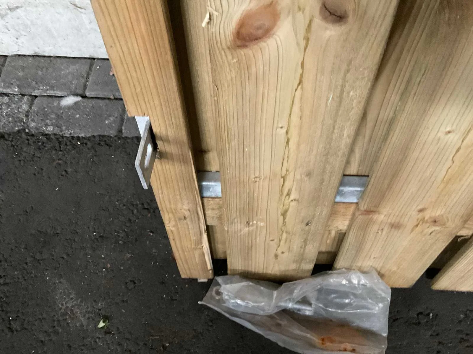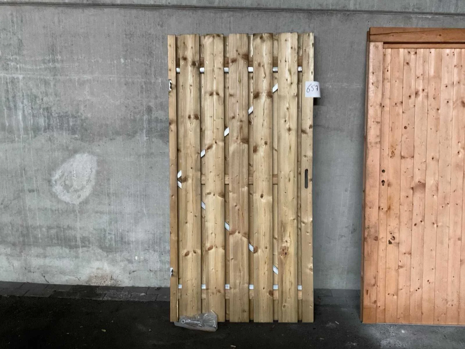 Geen hang en sluitwerk. Beschadigd, zie foto's voor details. Merk: Hillhout Model: Tuinpoort Product type: Metalen frame Gewicht: 75kg Breedte: 100cm Hoogte: 195cm Materiaal: Geimperneerd vuren