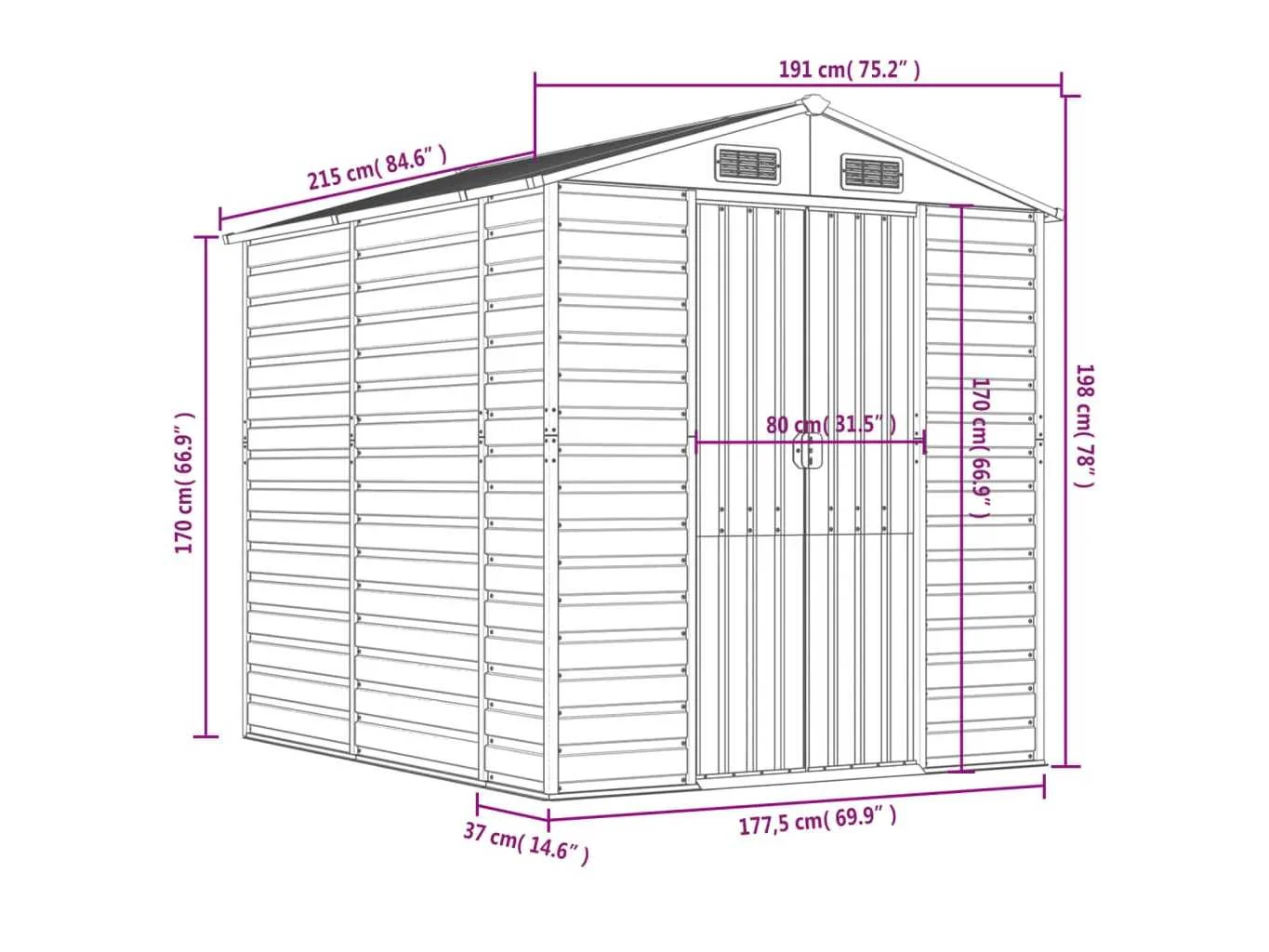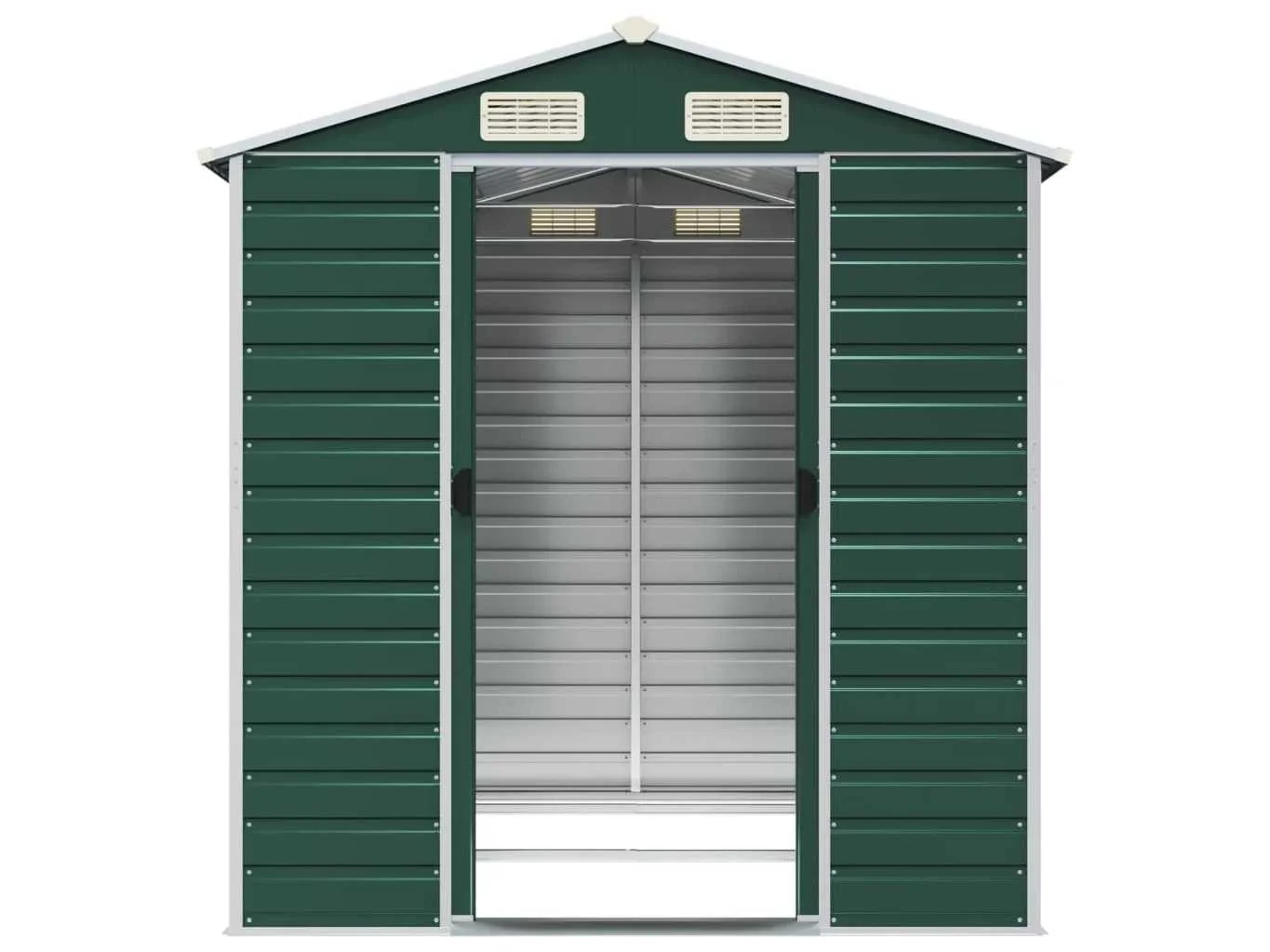 Omschrijving Breid je tuinopbergmogelijkheden uit en bescherm je gereedschap met deze multifunctionele tuinschuur. Robuust materiaal: het tuinschuurtje is gemaakt van gegalvaniseerd staal, dat roestvorming voorkomt en lang meegaat. Staal is een buitengewoon hard en sterk materiaal. Het biedt stevigheid en stabiliteit. Galvanisatie biedt een betere bescherming tegen corrosie en is handig voor producten die buiten of in ruwe omgevingen worden gebruikt. Voldoende opbergruimte: deze metalen schuur biedt voldoende ruimte om je brandhout, tuingereedschap, meubels, uitrusting en meer in op te bergen. Handige handgrepen: de deur van de opbergschuur is voorzien van handgrepen voor gemakkelijke toegang. Goede ventilatie: de berging heeft 4 ventilatieopeningen die zorgen voor ventilatie, om de ophoping van vocht en geurtjes in de schuur te verminderen. Schuin ontwerp: dankzij het schuine dak loopt water er ongehinderd vanaf. Kleur: groen Materiaal: gegalvaniseerd staal Totale afmetingen: 191 x 215 x 198 cm (B x D x H) Afmetingen deur: 80 x 170 cm (B x H) Merk: VidaXL Model: zadeldak Product type: tuinhuis Kleur: donkergroen Gewicht: 100kg Lengte: 215cm Breedte: 191cm Hoogte: 198cm Materiaal: Verzinkt-gespoten staal