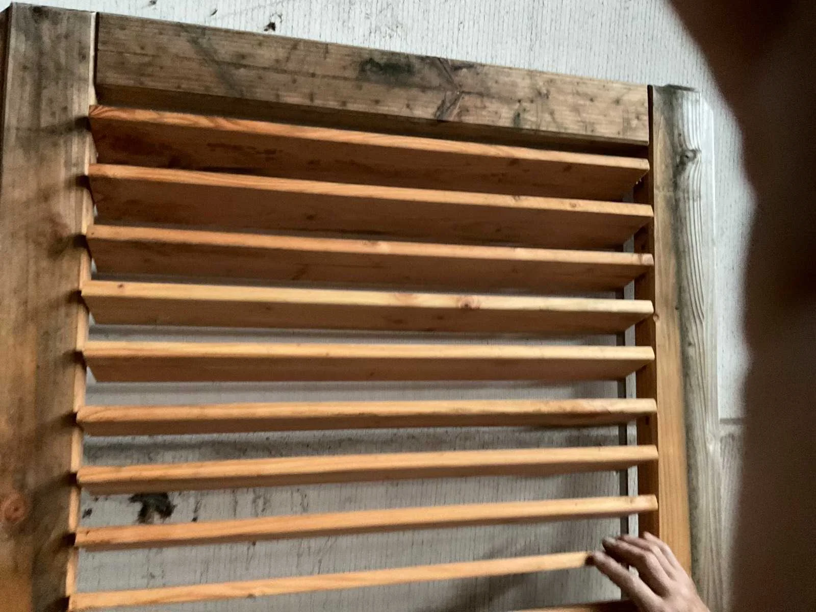 Zie foto's voor details. Merk: Hillhout Product type: Verstelbare lamelle Gewicht: 75kg Breedte: 90cm Hoogte: 225cm Materiaal: Douglas