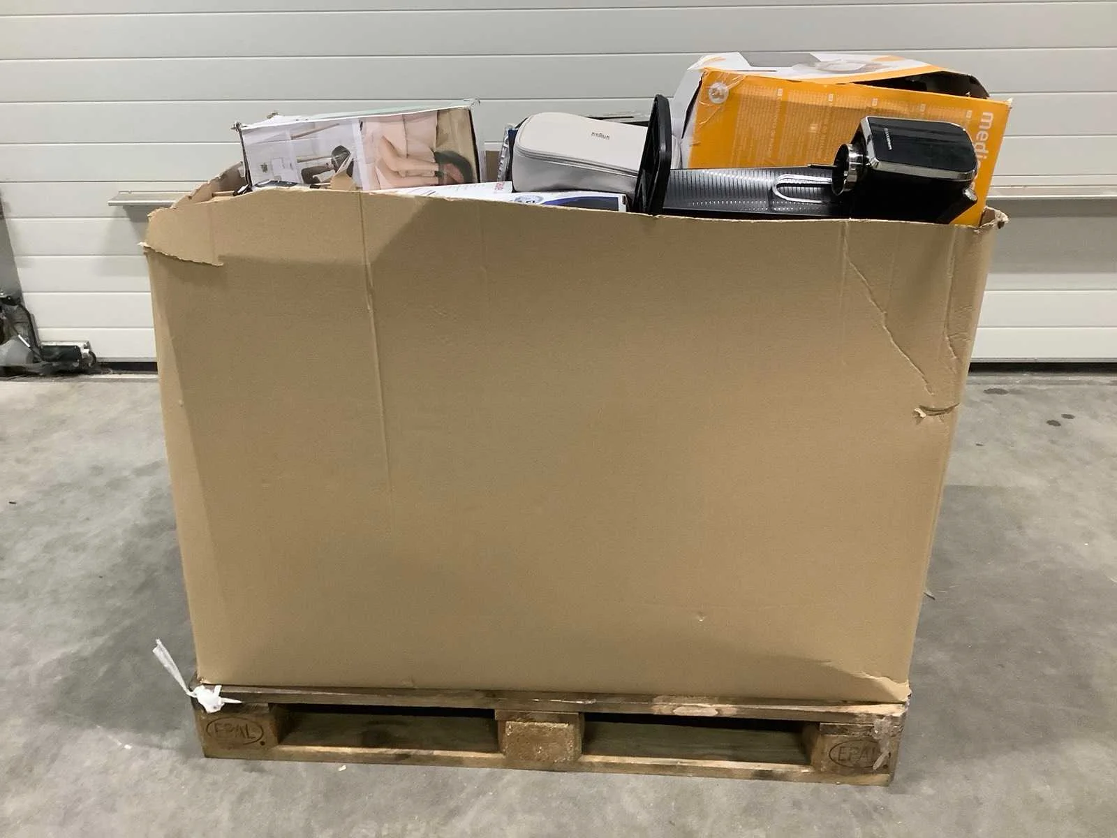 Dit betreft een partij retourgoederen van een grote online retailer. De goederen bestaan uit diverse productcategorieën. Ongecontroleerd: werking onbekend (mix van werkend, incompleet, beschadigd, te gebruiken voor onderdelen). Kom op de kijkdag om te om zo een goed beeld te krijgen van de reden van retour. Merk: Pallet