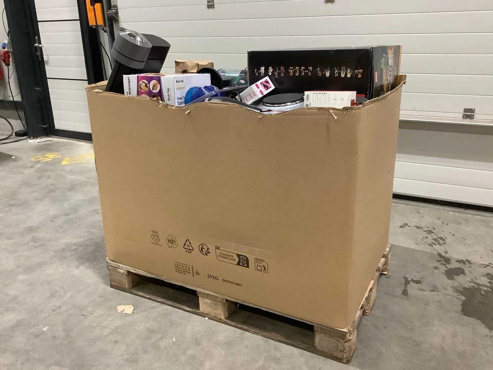 Dit betreft een partij retourgoederen van een grote online retailer. De goederen bestaan uit diverse productcategorieën. Ongecontroleerd: werking onbekend (mix van werkend, incompleet, beschadigd, te gebruiken voor onderdelen). Kom op de kijkdag om te om zo een goed beeld te krijgen van de reden van retour. Merk: Pallet