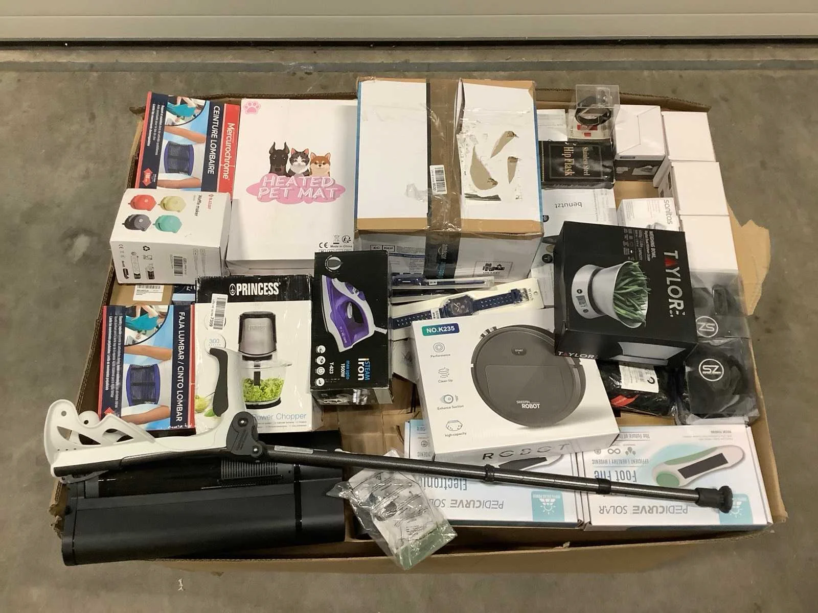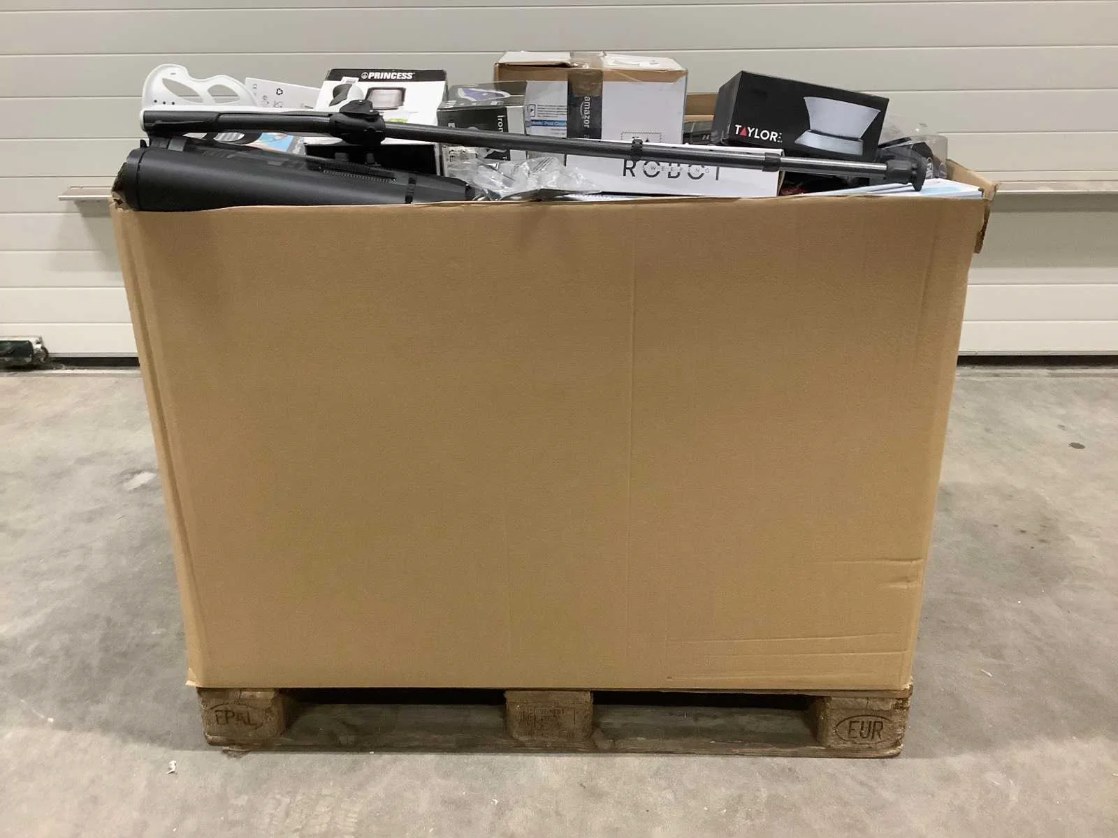 Dit betreft een partij retourgoederen van een grote online retailer. De goederen bestaan uit diverse productcategorieën. Ongecontroleerd: werking onbekend (mix van werkend, incompleet, beschadigd, te gebruiken voor onderdelen). Kom op de kijkdag om te om zo een goed beeld te krijgen van de reden van retour. Merk: Pallet