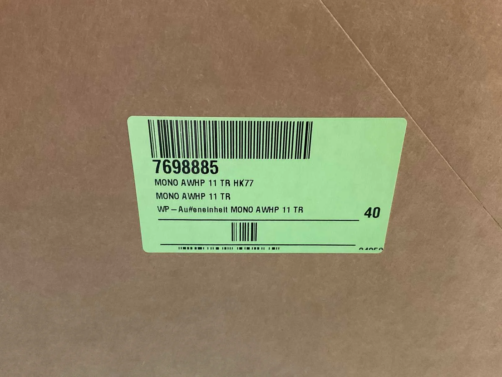 Lucht/water-warmtepomp 11kW zonder verwarmingselement. Buitendeel MONO AWHP 11 TR / Binnendeel BLWMKIOH BLW Mono (OH) zonder elektrische verwarming = Aansluitmogelijkheid voor één externe warmtebron: combineerbaar met een tweede warmtebron. Monoblokwarmtepomp voor verwarmingssystemen voor installatie buiten en binnen gebouwen. Met ingebouwde verwarmingscircuitregeling voor 1 pompverwarmingscircuit met hoogrendementspomp, statusbewaking, systeemdiagnose en foutdetectie. Weersafhankelijke regeling voor 1 verwarmingscircuit en warmwaterbereiding. Geïntegreerde IWR Alpha met volledig grafische weergave en menugestuurde weergave van platte tekst. Volledig hybride functionaliteit geïntegreerd. Hybride functie, automatische omschakeling op basis van de energieprijs. Fotovoltaïsche functie (PV). Koeling mogelijk (boven het dauwpunt). Vermogensgeregelde compressor. Max. aanvoertemperatuur +60 °C. Min. buitentemperatuur -20 °C. Gevuld met koelmiddel R410A. Ingebouwde startstroombegrenzing via frequentieomvormer. Interne warmwatertank 180 liter. 3-weg omschakelventiel en drinkwatersensor geïntegreerd. Kogelkraan met geïntegreerd filter (400 µm). 8 liter expansievat, manometer en veiligheidsventiel. Model: 7764814 Product type: Lucht-water warmtepomp Gewicht: 129,94kg