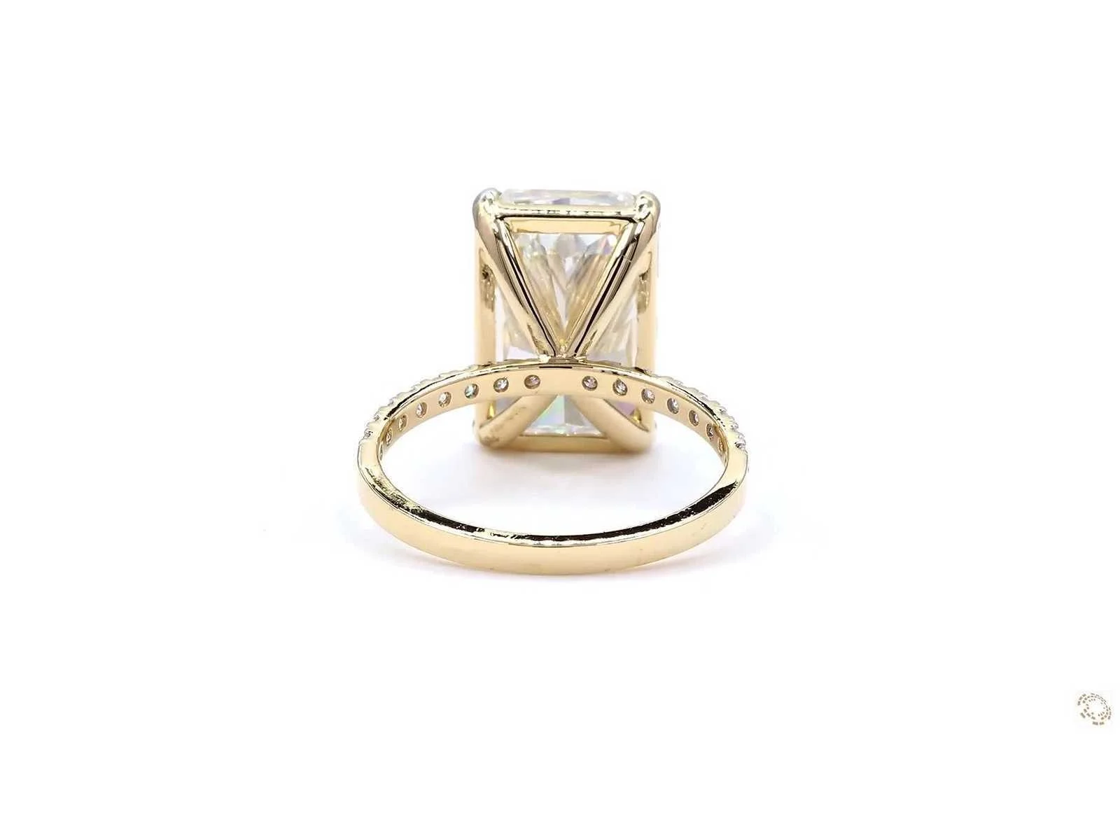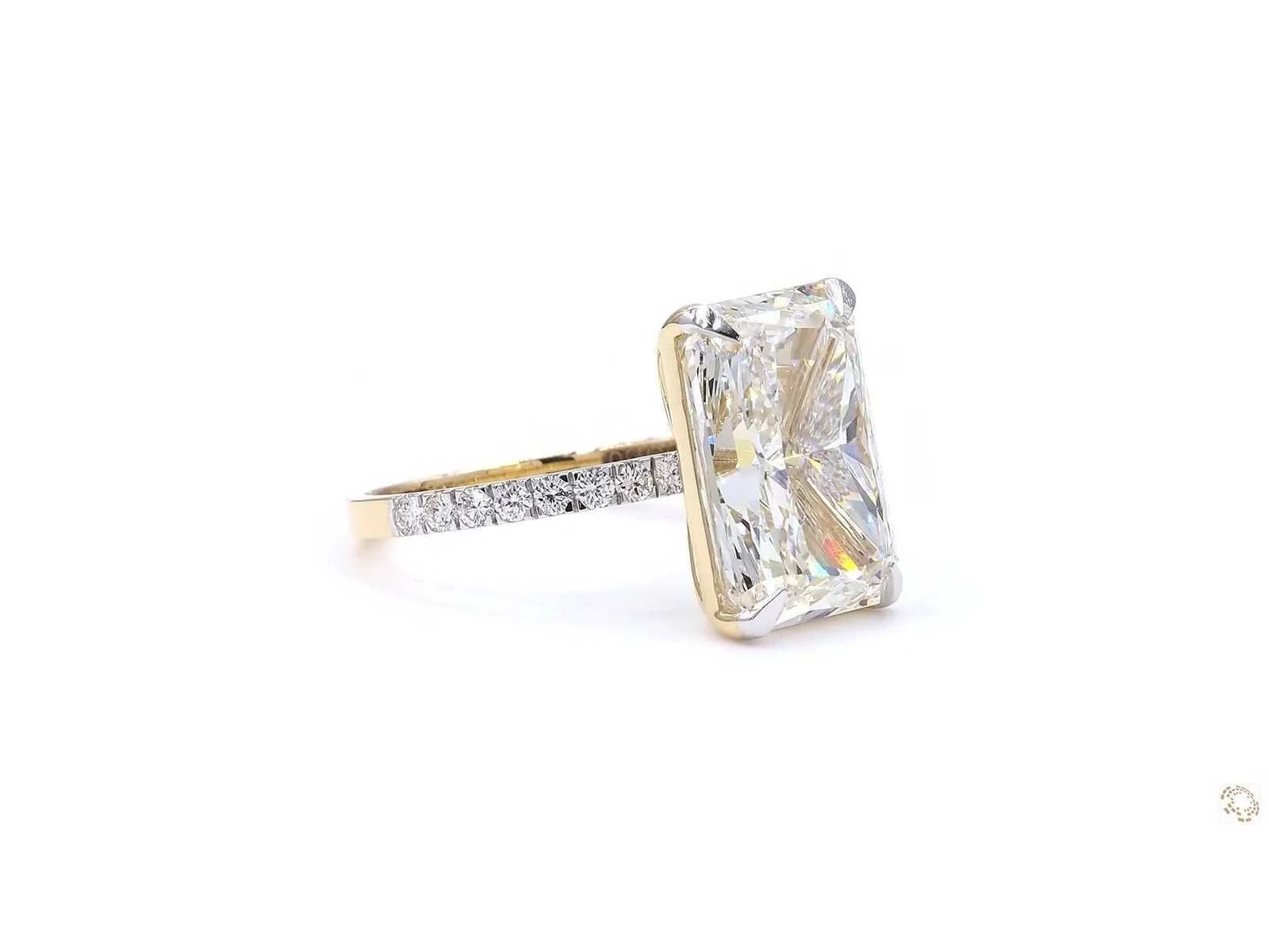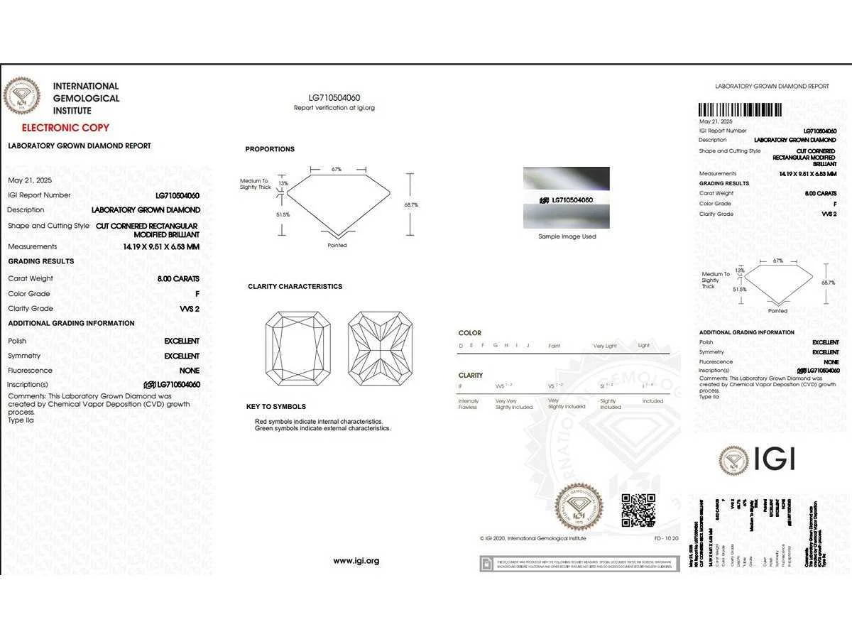Rapportnummer IGI: LG710504060 Ringmaat - 54 EU / 14 IT / 6,75 US Totaal karaatgewicht - 8,35 Gewicht van de hoofdzakelijke steen: 8,00 karaat. Kleur: F Helderheid: VVS2: uitstekend Symmetrie: uitstekend Omringende steen - 0,35 (16 stuks) Totale ringgewicht: 4.390 gram 18K Geelgoud Bezichtiging op afspraak Materiaal: geel goud Maten: 54 Certificaat: ja Lage schatting: 23900€
