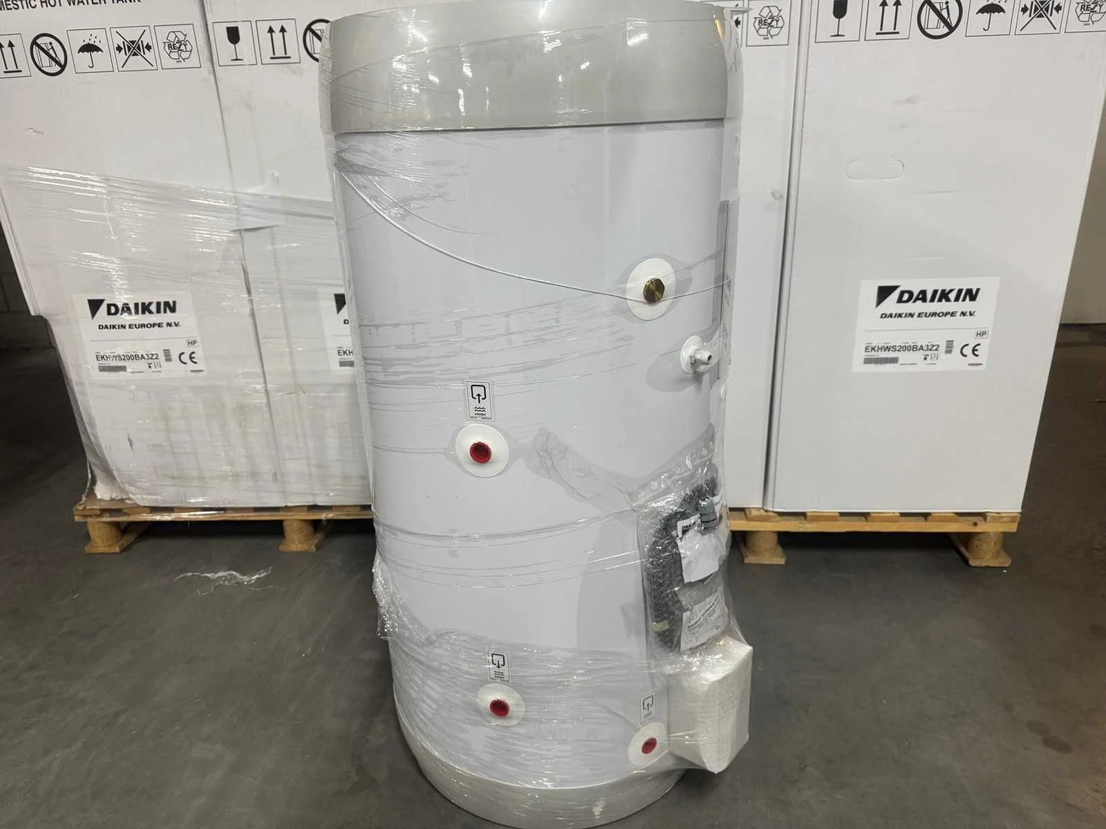 De Daikin Altherma 3 warmwatertank is roestvrijstalen sanitaire warmwatertank met een inhoud van 200 liter. De snelverwarmende en energiezuinige warmwater- en thermische opslagtanks van Daikin zijn voorzien van hoogwaardige isolatie die het warmteverlies tot een minimum beperkt. Ze kunnen worden gecombineerd met warmtepompen en cv-ketels op olie of gas, of worden toegepast als losstaande tanks. Advies verkoopprijs € 2134,-- Merk: Daikin Model: EKHWS200BA3Z2