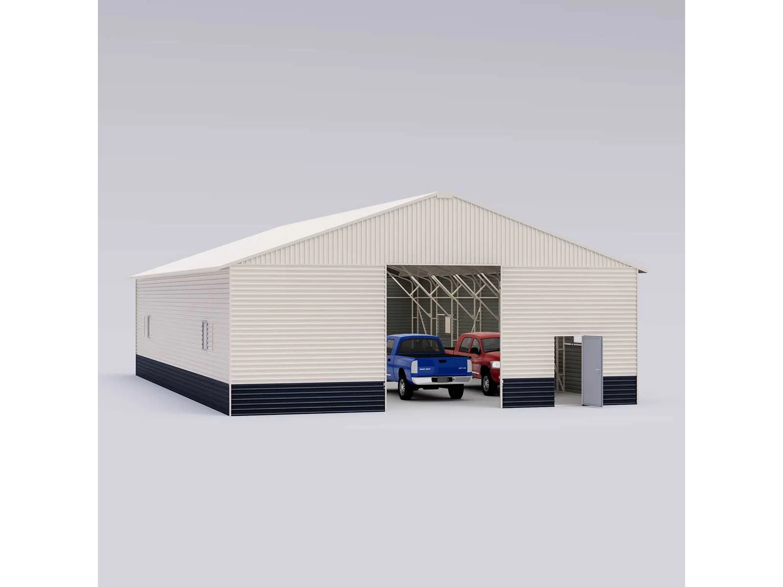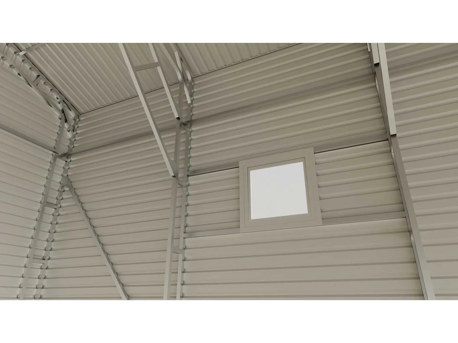 Voorzien van 50x50x1,5 mm en 40x40x1,2 mm stalen buizenframe, automatische elektrische roldeur en zijdeur, vier ramen, afmetingen binnenzijde: 1496x1255x635 cm, wandhoogte: 417 cm, elektrische voorziening roldeur: 230 Volt, kleuren plaatwerk RAL9001+RAL7016. Merk: Field Industries Materiaal: Metaal Type: 4350 Bouwjaar: 2025 Totaal oppervlakte: 195m² Totale afmeting L: 14960mm Totale afmeting Breedte: 13030mm Totale afmeting Hoogte: 6350mm Eigen gewicht: 3900kg