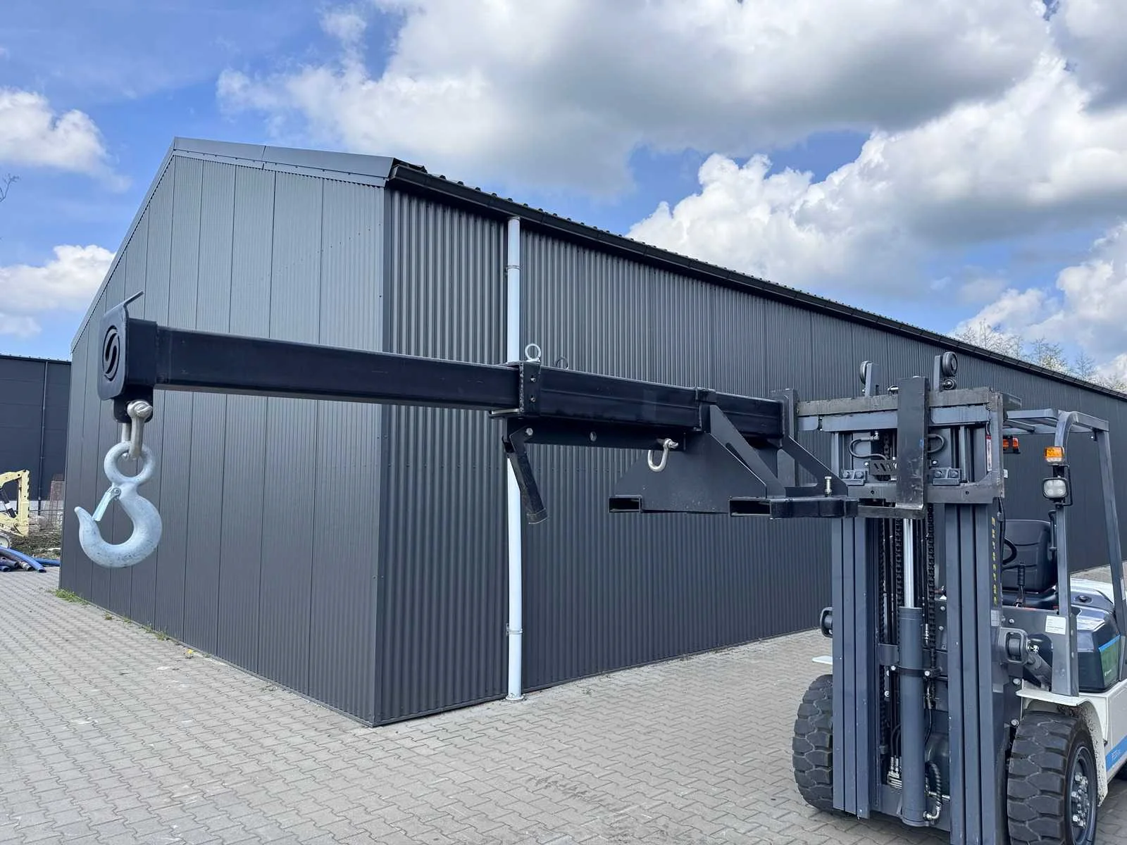 Maximaal hefvermogen: 3000 kg, voorzien van lepelgaten, geschikt voor heftruck. Voorzien van 5 verschillende haak lengtes. Uitschuifbare lengte: max. 254 cm. Geleverd in stalen transportframe (afmeting 182x106x63 cm). Merk: Field Type: Jib 3T Bouwjaar: 2025 Eigen gewicht: 165kg