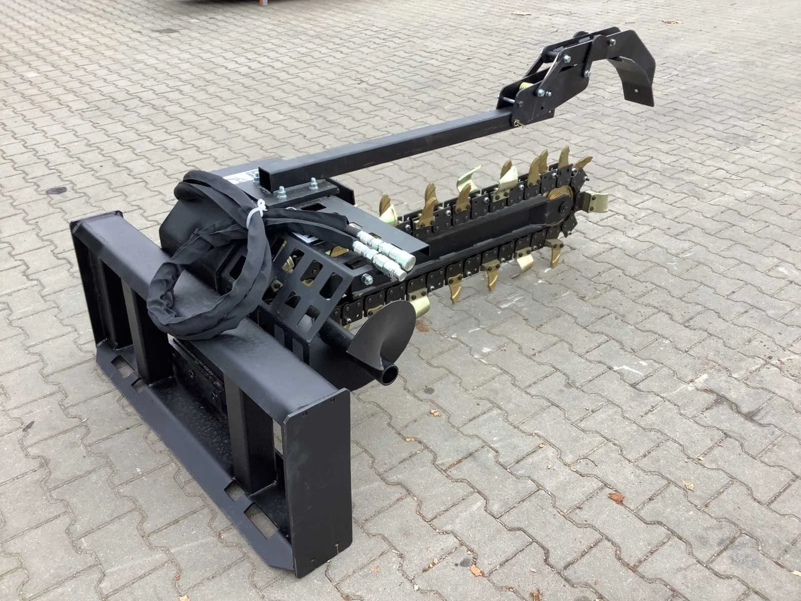 Voorzien van schranklader/“Bobcat” aansluiting, hydropomp, hydraulisch slangenpakket, werkbreedte 860 mm, werklengte 1750 mm, kettingbreedte 180 mm, ongebruikt Merk: Field Industries Type: Trencher Bouwjaar: 2025 Eigen gewicht: 320kg