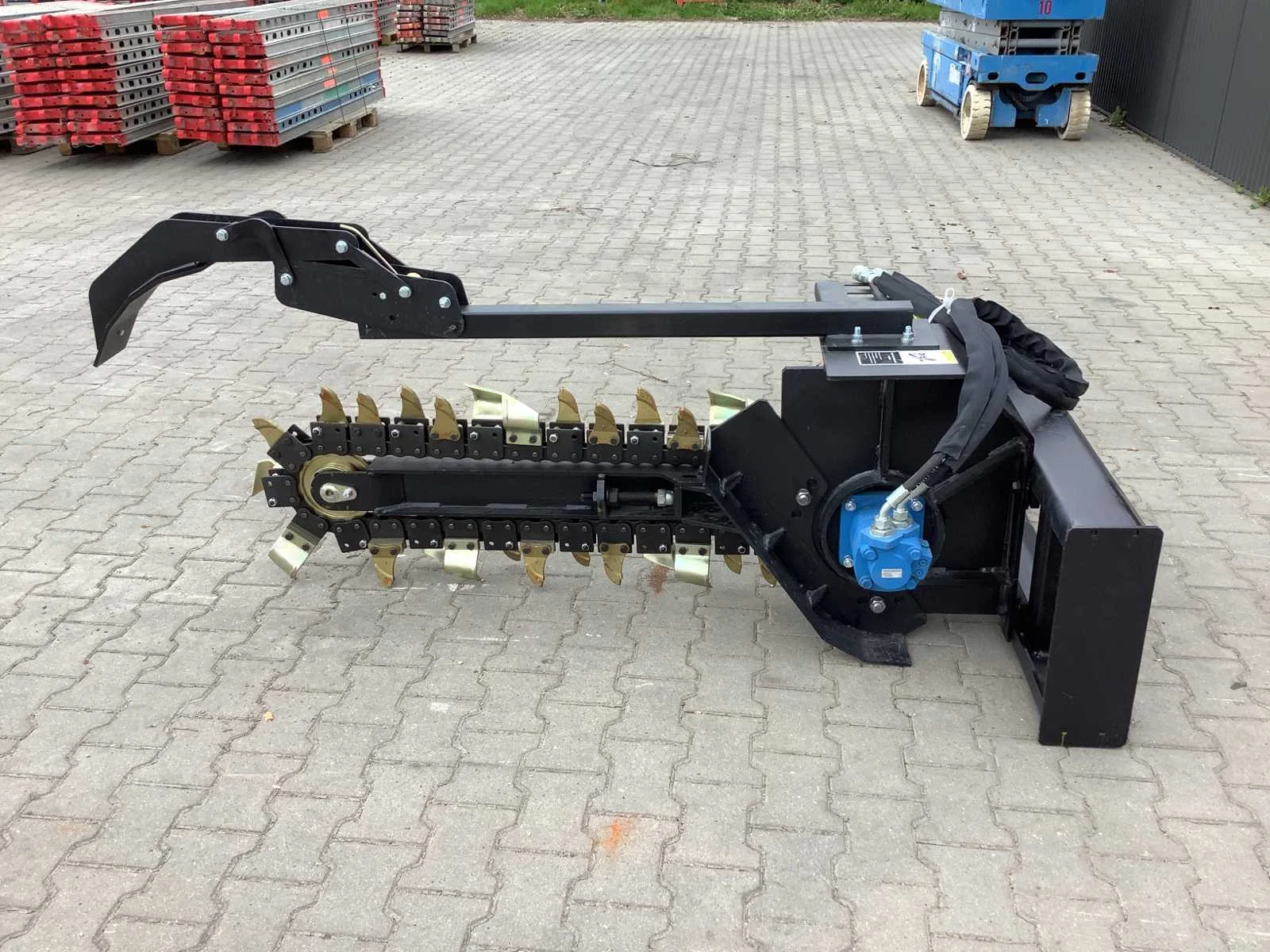 Voorzien van schranklader/“Bobcat” aansluiting, hydropomp, hydraulisch slangenpakket, werkbreedte 860 mm, werklengte 1750 mm, kettingbreedte 180 mm, ongebruikt Merk: Field Industries Type: Trencher Bouwjaar: 2025 Eigen gewicht: 320kg