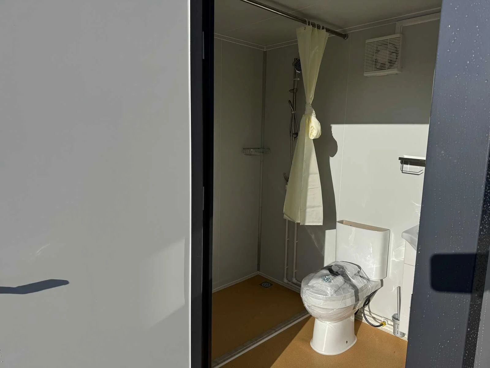 Voorzien van WC/toilet, douche, wastafel met spiegelkast, 230 Volt aansluiting, ventilatiesysteem, plafondverlichting, afsluitbaar met sleutel en knopcilinder, lepelgaten en hijsogen Merk: Field Facility Type: Restroom “De Luxe” Bouwjaar: 2025 Afmeting l: 2160mm Aantal ramen: 1 Aantal toiletten: 1 Aantal wastafels: 1 Aantal douches: 1 Eigen gewicht: 640kg Totale afmeting L: 2160mm Totale afmeting Breedte: 1920mm Totale afmeting Hoogte: 2360mm