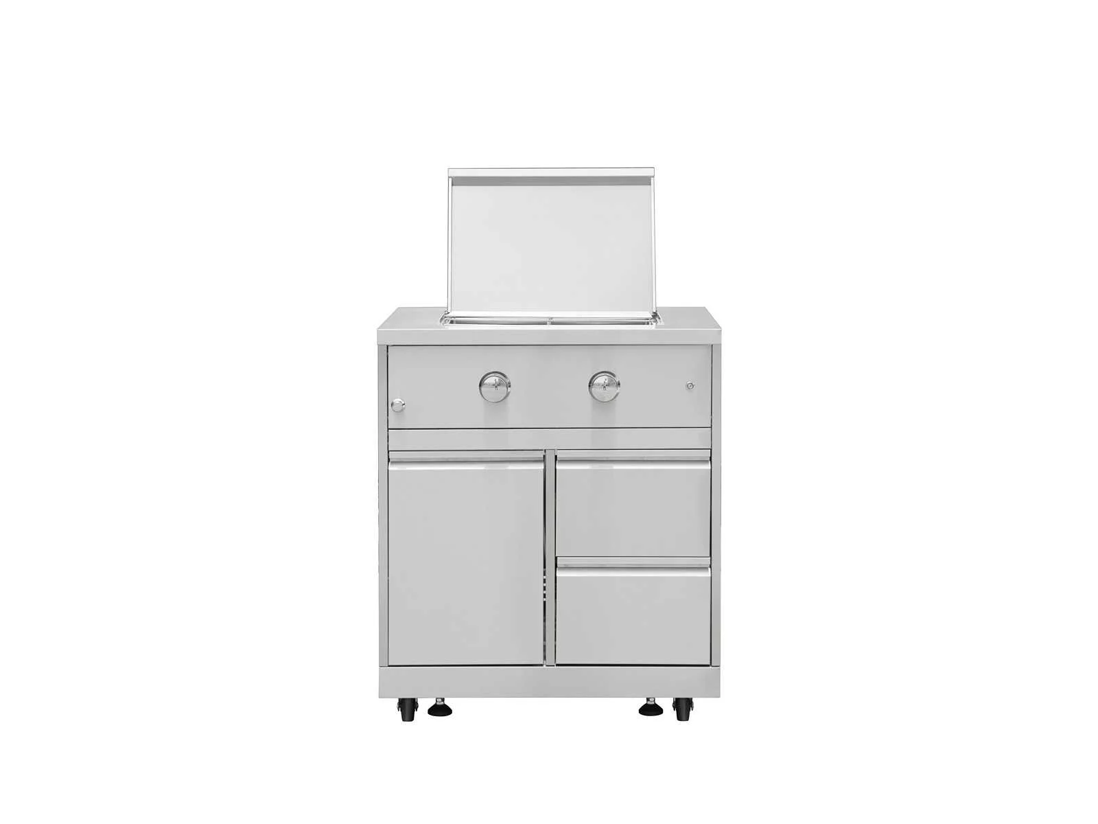 Modulair systeem, voorzien van barbecue/grill, pizza oven (houtgestookt) + accessoires, spoelbak + keukenkraan, diverse kast- en opbergruimte. Kleur: RVS/Stainless (roestvrij staal). Merk: Field Outdoor Model: Premium Stainless Collection Product type: #1 Breedte: 433cm Hoogte: 207cm Materiaal: RVS