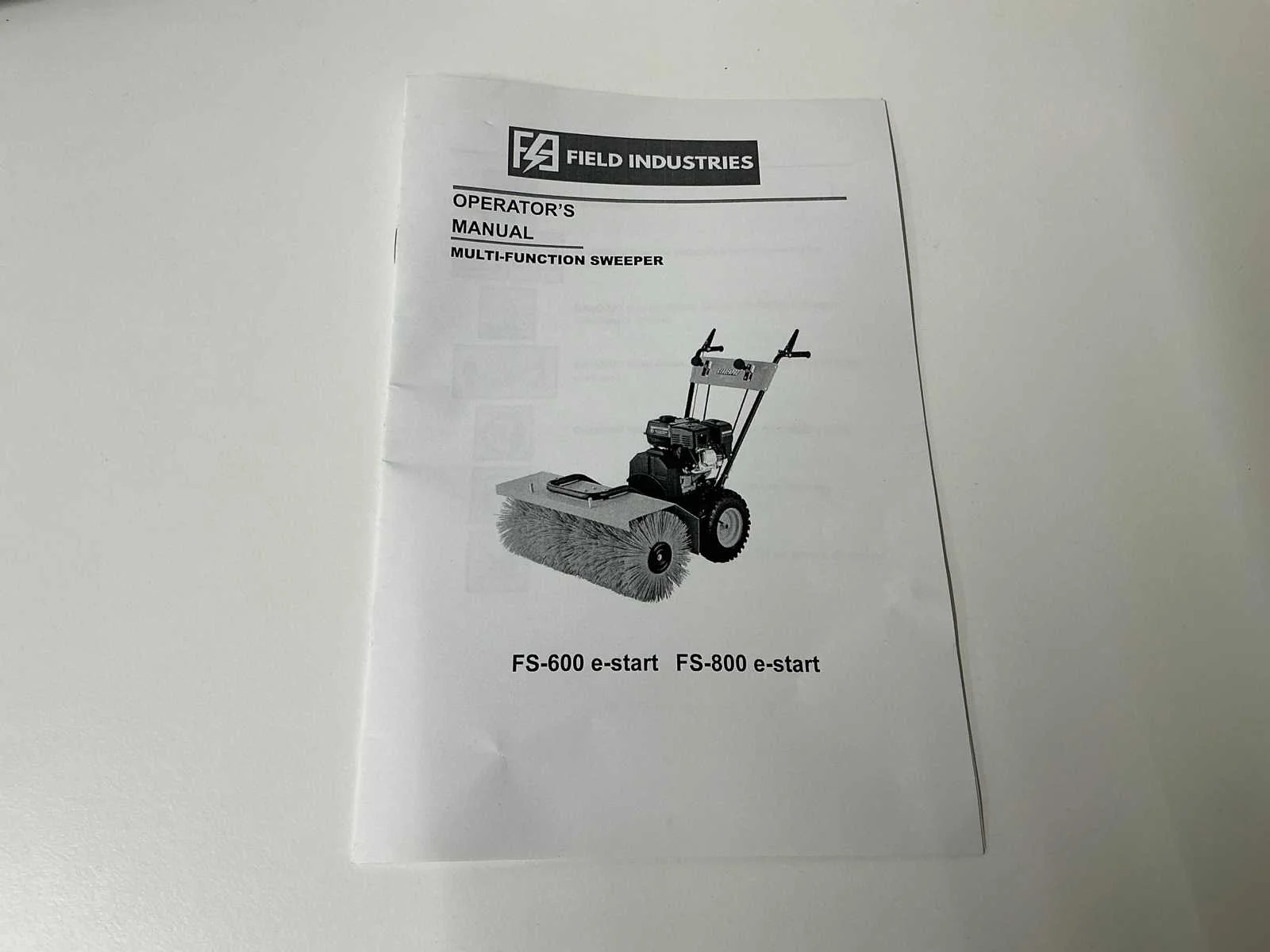 Zelfaangedreven veegmachine, voorzien van 196 cc Loncin 4-takt benzinemotor, elektrisch gestart. Rolborstel verstelbaar in drie verschillende standen (15° naar links, 0° en 15° naar rechts), 5 versnellingen vooruit en 2 achteruit Merk: Field Industries Type: FS-600 e-start Bouwjaar: 2025 Werkbreedte: 600mm