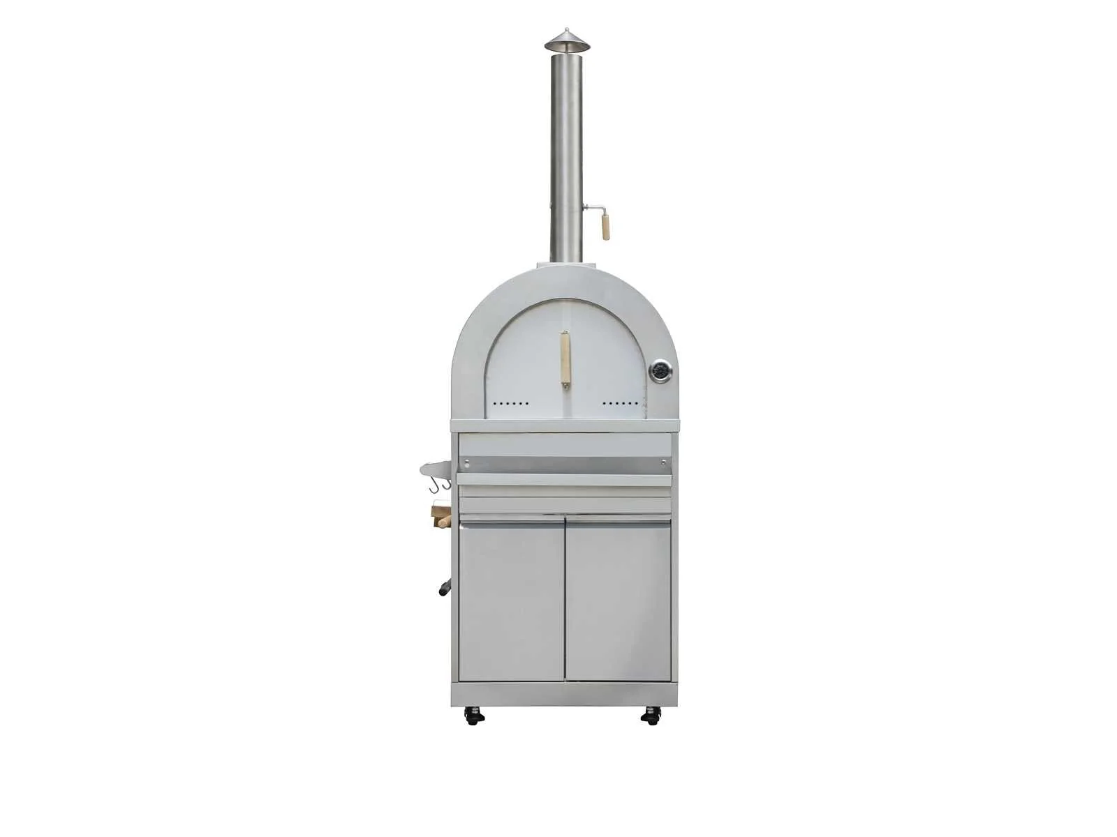 Modulair systeem, voorzien van barbecue/grill, pizza oven (houtgestookt) + accessoires, spoelbak + keukenkraan, diverse kast- en opbergruimte. Kleur: RVS/Stainless (roestvrij staal). Merk: Field Outdoor Model: Premium Stainless Collection Product type: #1 Breedte: 433cm Hoogte: 207cm Materiaal: RVS