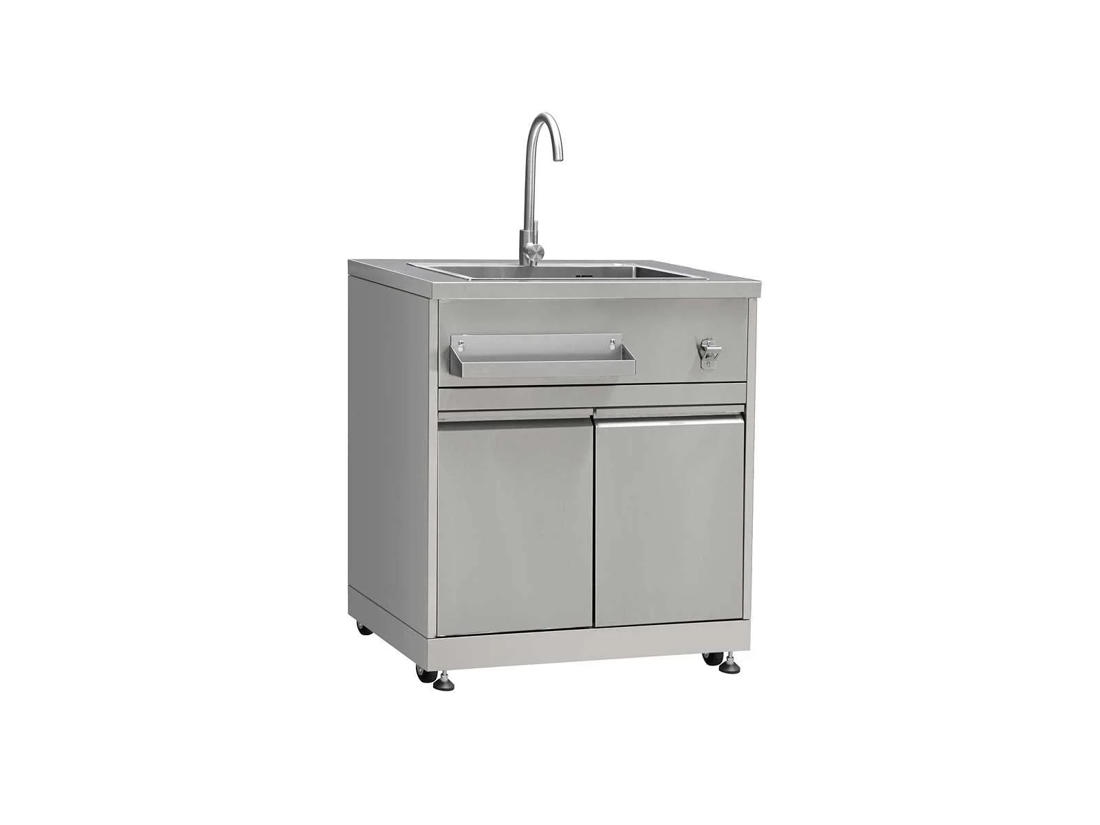 Modulair systeem, voorzien van barbecue/grill, pizza oven (houtgestookt) + accessoires, spoelbak + keukenkraan, diverse kast- en opbergruimte. Kleur: RVS/Stainless (roestvrij staal). Merk: Field Outdoor Model: Premium Stainless Collection Product type: #1 Breedte: 433cm Hoogte: 207cm Materiaal: RVS