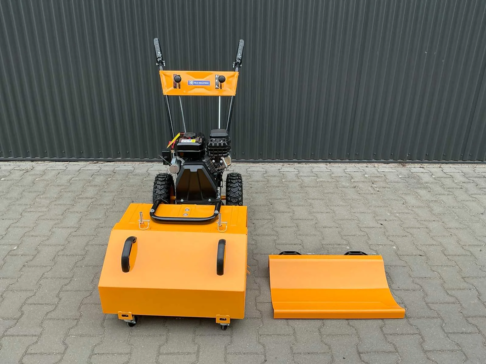Zelfaangedreven veegmachine, voorzien van 196 cc Loncin 4-takt benzinemotor, elektrisch gestart. Rolborstel verstelbaar in drie verschillende standen (15° naar links, 0° en 15° naar rechts), 5 versnellingen vooruit en 2 achteruit Merk: Field Industries Type: FS-600 e-start Bouwjaar: 2025 Werkbreedte: 600mm