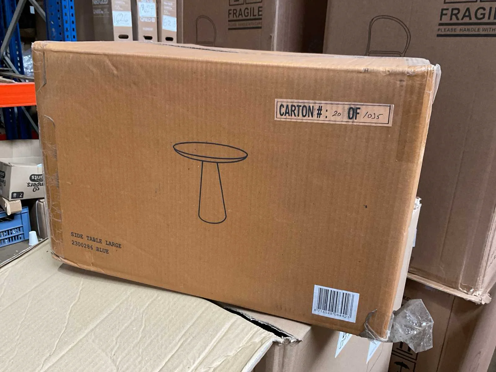 Ongebruikt in verpakking. Merk: White label living Model: Ringar Vorm: Rond Kleur: Blauw Gewicht: 4,3kg Lengte: 40cm Breedte: 40cm Hoogte: 46cm Materiaal: Metaal