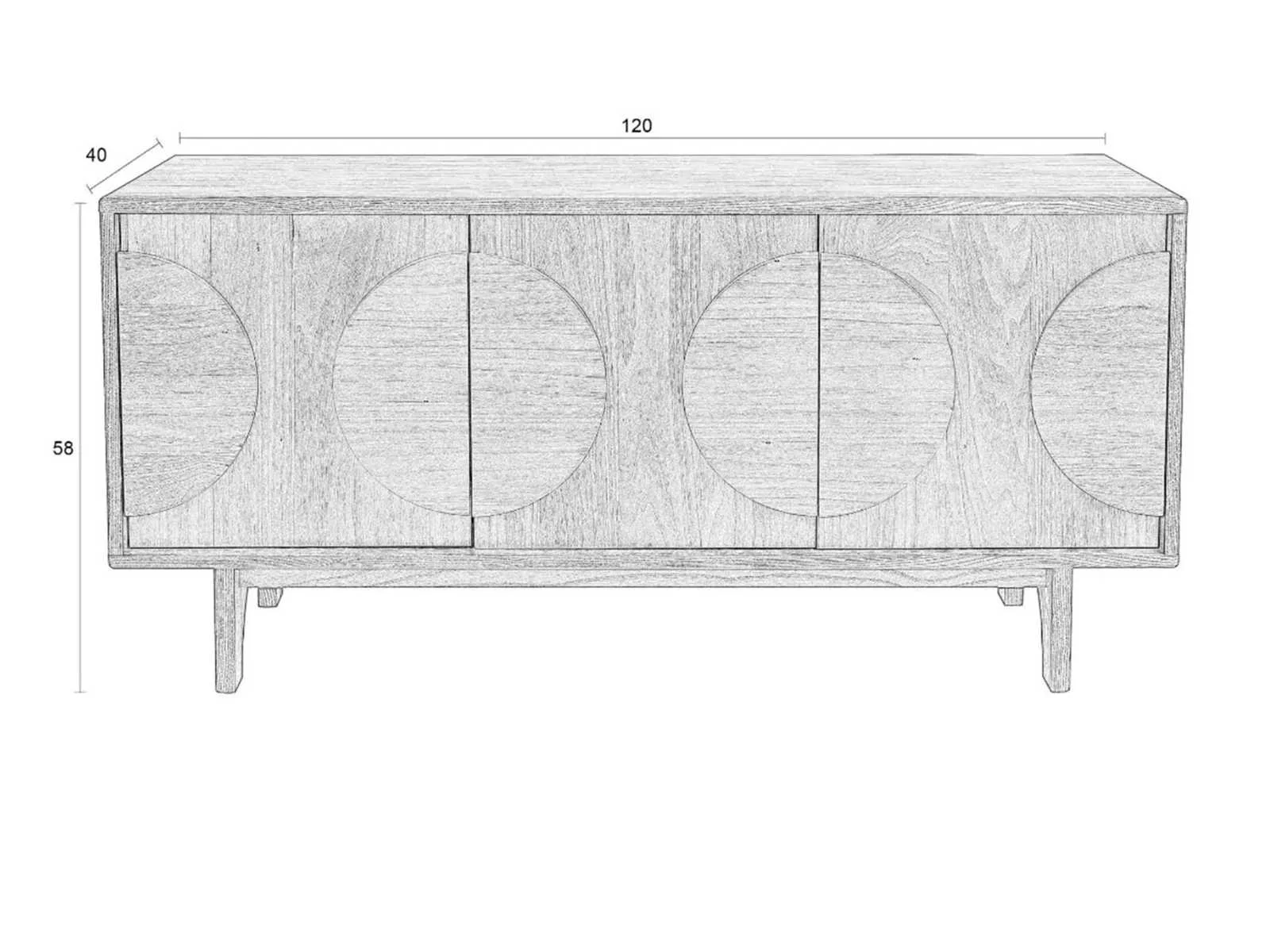 Merk: Zuiver Model: Groove 3 deuren Kleur: Bruin Gewicht: 35kg Breedte: 120cm Hoogte: 58cm Diepte: 40cm Materiaal: Essenhout
